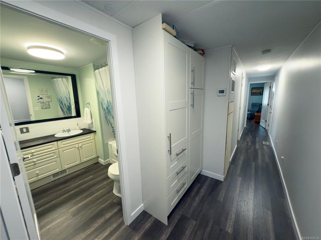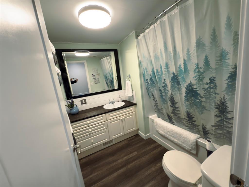 Welcome to this little gem in Woodburn mobile park. This home has been extensively renovated in the past five years including new windows, roof, siding, kitchen, bathrooms, flooring, AND just got a new heat pump. This one-level mobile features two bedrooms, two bathrooms and a bright, inviting feel. The primary bedroom has a walk-in closet and two piece ensuite. You will love being surrounded by the forest and walking trails, and being just minutes to the Campbell River and McIvor lake. Woodburn park has amazing low pad fees and is family-oriented. This home is move-in ready for new owners- come and see it today!