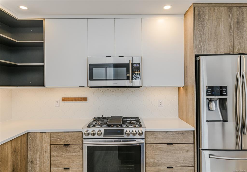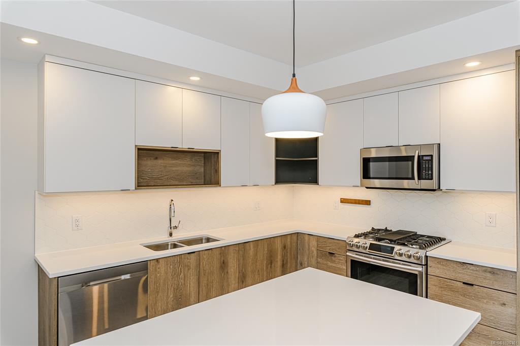Welcome to Triple Crown Residence One! This bright and spacious top-floor 2-bedroom, 2-bathroom condo offers modern living at its finest. Featuring an open-concept layout with 9’ ceilings, a stylish kitchen with quartz countertops and stainless steel appliances, and a large island perfect for entertaining. Enjoy morning coffee or evening sunsets from your private balcony with mountain views. The primary bedroom includes a walk-through closet and a spa-inspired ensuite. Additional highlights include in-suite laundry, air conditioning, and two secure underground parking spaces plus a storage locker. This well-managed, pet- and rental-friendly building offers excellent amenities, including a fitness centre and bike storage, all within walking distance to shops, restaurants, schools, and recreation. Easy access to the highway makes commuting a breeze. Experience modern comfort and convenience in one of Langford’s most sought-after communities — Triple Crown. Quick close possible.