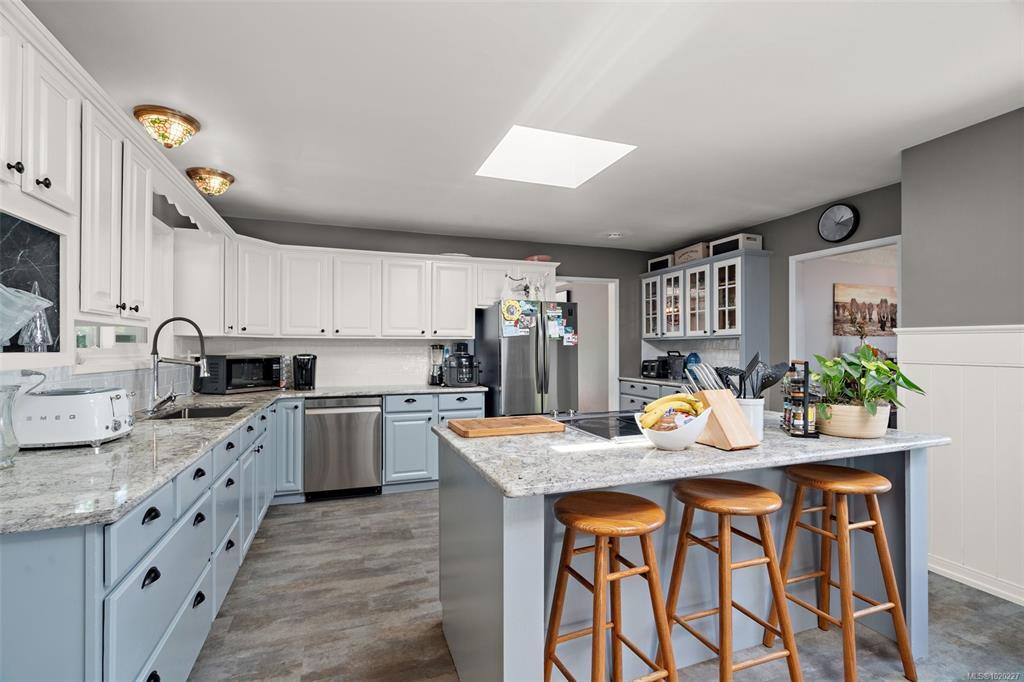 A rare offering in Metchosin’s sought-after Duke Rd neighbourhood! First time on the market, this exceptional 1-acre property offers over 4,000 sq. ft. of updated and upgraded living space—kitchen and bathrooms are just the start. The main level features a spacious primary suite, vaulted ceilings, and beautifully modernized interiors. Downstairs includes a flexible in-law suite with 1–2 bedrooms, a large flex room, and ample storage. Perfect for hobbyists or car enthusiasts, the updated garage includes custom-built cabinets and plenty of space, plus extra parking. Outside, enjoy hobby farm potential with a fenced garden, mature landscaping, and brand-new custom chicken coops. Just steps from Tower Point Park, Whitty’s Beach, and My Chosen Café, and minutes to Royal Bay—this is a rare chance to embrace a private, peaceful West Coast lifestyle surrounded by nature.