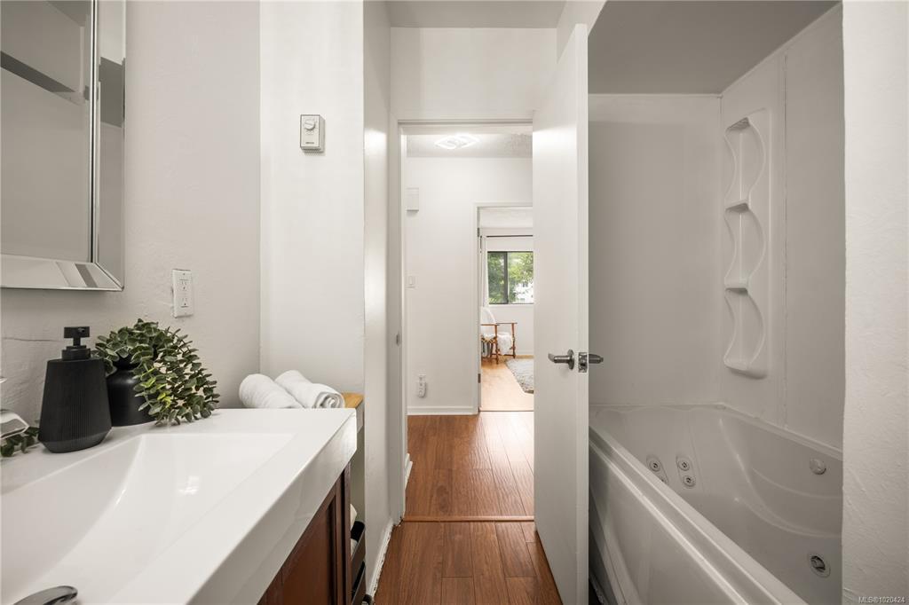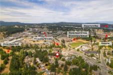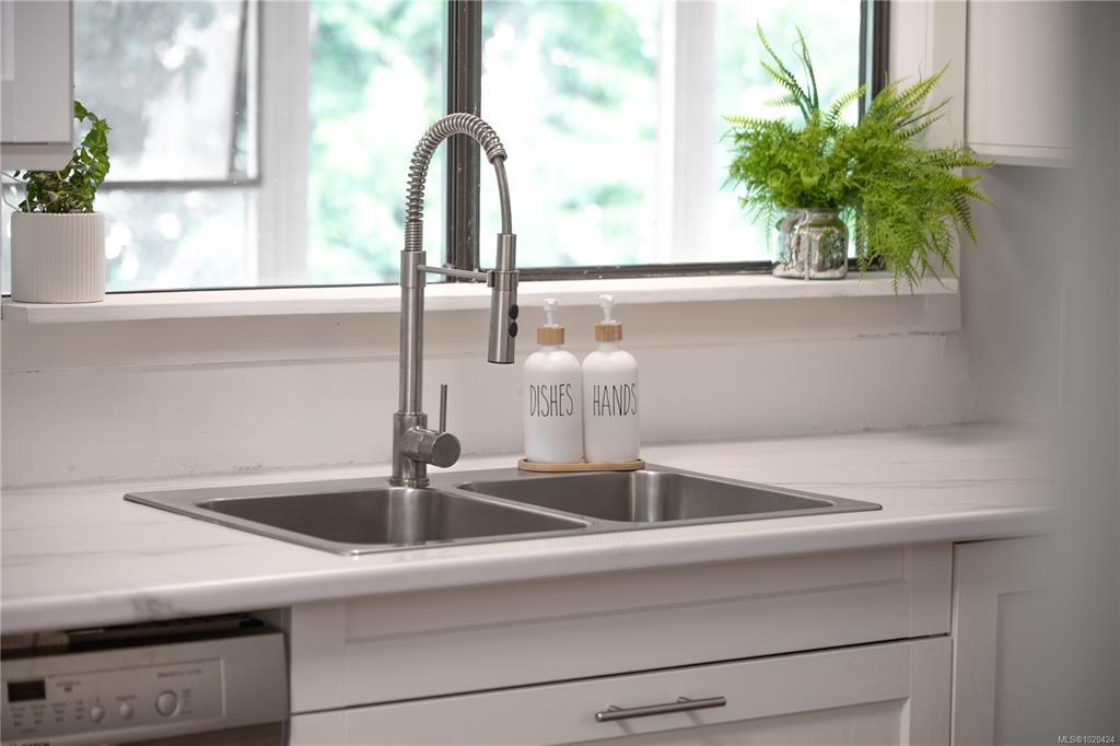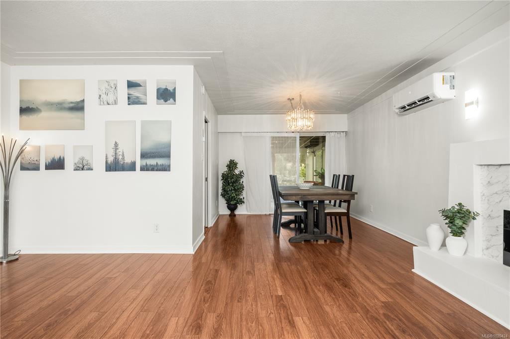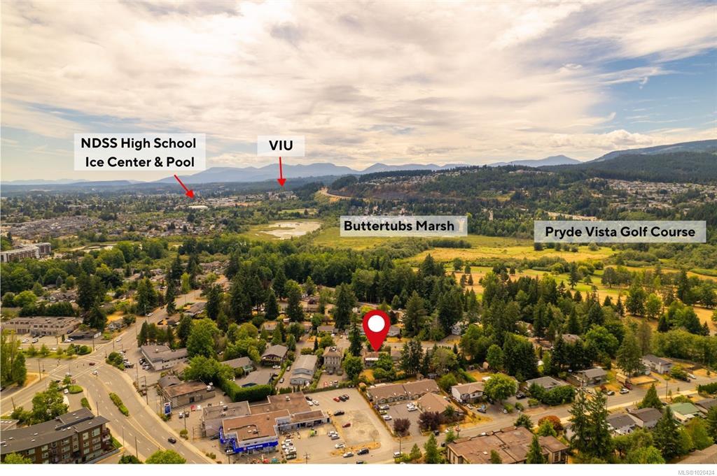 Suited level entry home on large 0.22 acre lot set on quiet street near Pryde Golf course walkable to all in Central Nanaimo. 2,300 sq ft of updated living space offers 3 bedrooms + den & sunroom. A self-contained suite so nice it rivals the main level! Efficient heating & cooling through 6 ductless heat pumps. Both levels feature updated kitchens & bathrooms, fresh paint, shared gas on-demand hot water, LED lighting & 200-amp panel with room for EV charger or hot tub. Main level modern kitchen has stainless appliances, pantry plus laundry. An updated bath has double sinks, soaker tub & massage shower. A spacious sunroom adds 300 sq ft for year-round use. Downstairs includes a large covered patio into a bright 1-bedroom + den suite with full kitchen, laundry, soaker tub, double vanity, den + bonus room. Fully fenced backyard offers mature landscaping, RV parking, shed & workshop. Walk to schools, parks, shopping, dining & trails — a rare blend of comfort, charm, and convenience awaits!