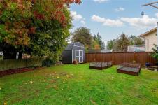 Located on a quiet Sidney cul-de-sac, this beautifully updated home sits on a meticulously landscaped 7,841 sq ft lot & offers outstanding value with numerous recent upgrades. The main level features 2BRs, an updated 4-PC BA, an updated bright cooks kitchen with SS appliances, an adjoining eating area, all complimented by a spacious livingroom with a natural gas fireplace for those winter eves. Lower level has been transformed into a 2-BR suite ideal for extended family & is currently rented for $2,500/month to excellent long-term tenants. Outside, the property shines with thoughtful improvements: a new roof (April 2024) a newly installed fence dividing the backyard to create private outdoor spaces for both you & your tenants, a 100 sq ft storage shed/workspace—perfect for hobbies or extra storage. The backyard is fully fenced, is ideal for kids, pets, gardening, & outdoor entertaining. This home has been exceptionally maintained, with tasteful upgrades throughout & is move-in ready.