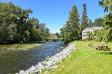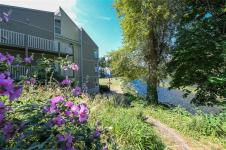 A very comfortable living space big enough for a family starting out . There is room to grow equity while growing a family. Only the top floor units have a third bedroom and den. Year round view of the river and its changing seasons. Wood stove available for winter ambiance and a deck to enjoy from spring through fall. Easy walking to down town from here and a bus stop away from the college and many other services