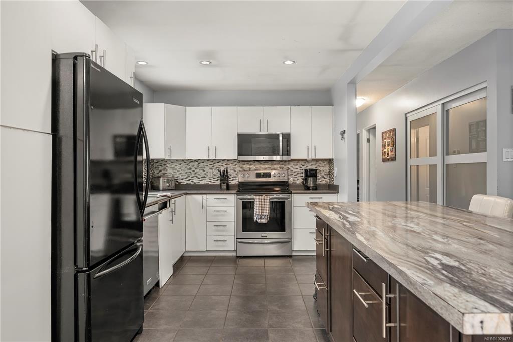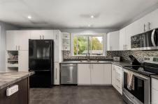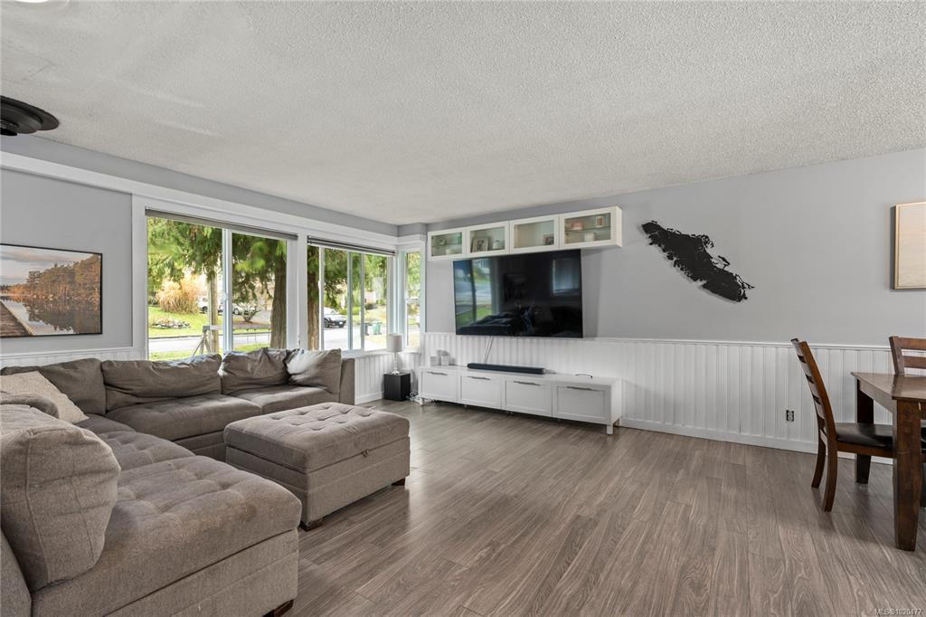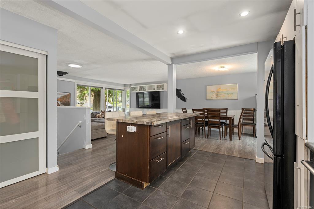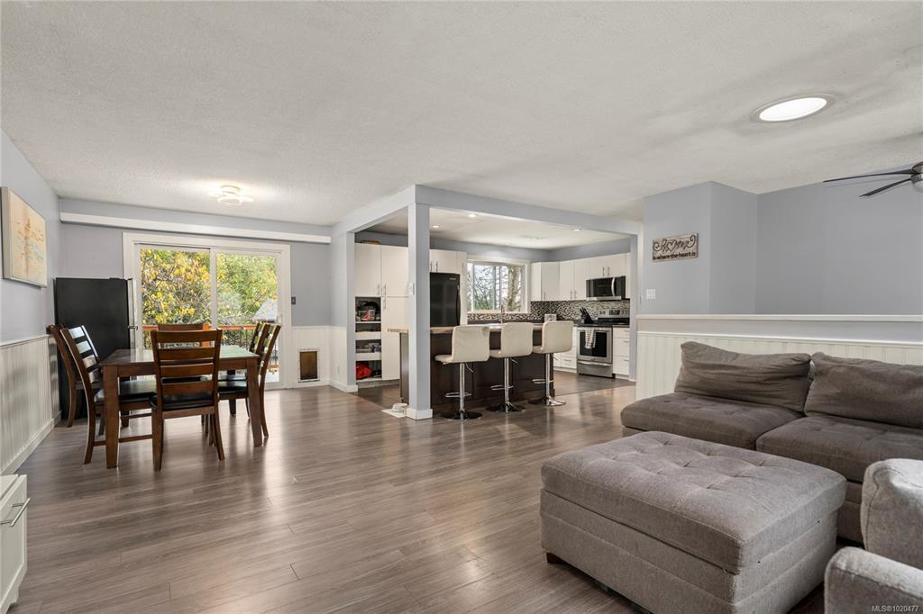 This updated home sits on a large lot on a quiet no-thru street just off Departure Bay Road—an ideal location within walking distance to both levels of school and Departure Bay Beach, as well as all central Nanaimo amenities. The bright, sunny kitchen opens into a spacious, open-concept living and dining area that leads out to a large wraparound sundeck with stairs down to the yard below. The backyard is partially fenced, offering a great space for kids, pets, or outdoor entertaining.