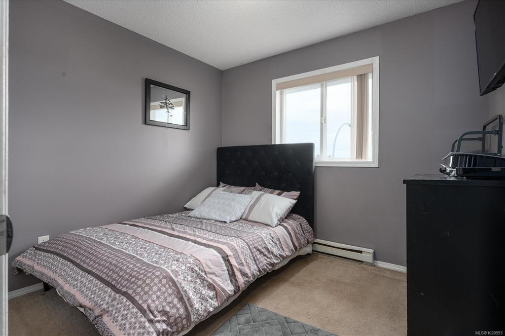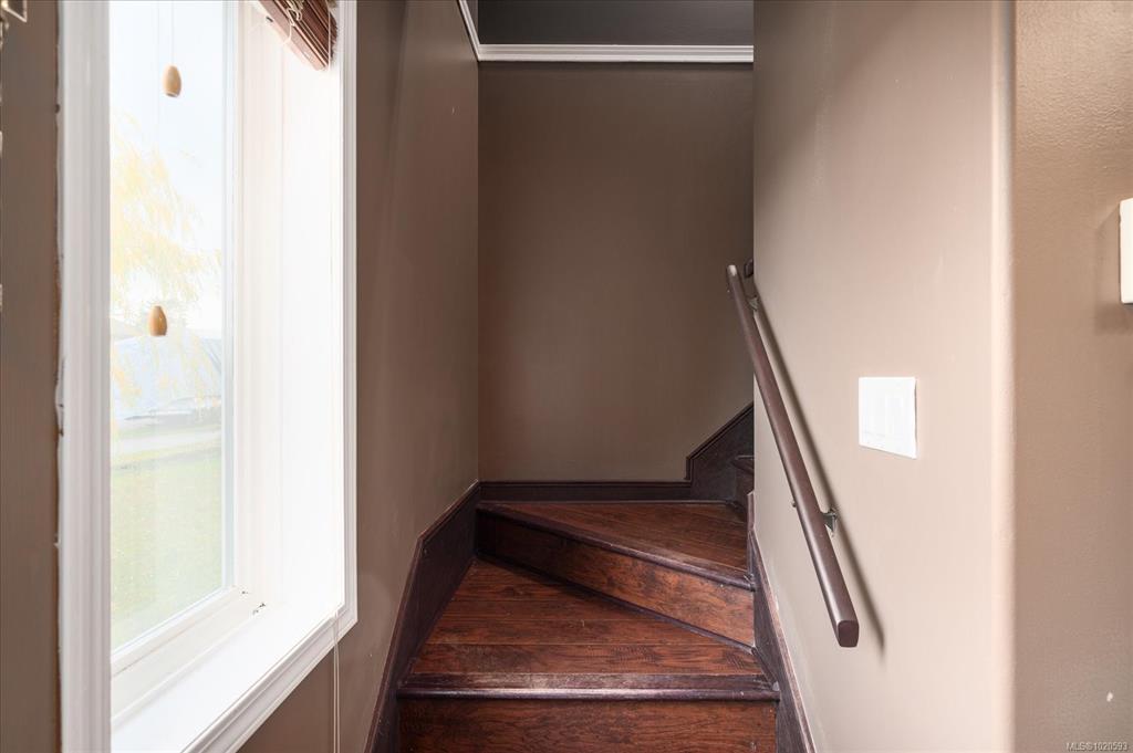 Enjoy peek-a-boo views of Gabriola Island from this clean & well maintained 4-bedroom, 3-bathroom home located on a quiet no-through street close to all level schools & VIU. The main level features a gas fireplace, a charming hutch inset, updated lighting, & modern paint colors throughout. A skylight brightens the 4-piece bathroom, while the fully fenced backyard offers a spacious retreat with a 200 sq ft sun-filled deck—perfect for summer evenings. The yard becomes a true haven in warmer months, complete with a big workshop for projects or storage. The roof is about six years old, On demand hot water was installed in 2017. Downstairs, 1-bedroom unauthorized cozy suite with separate entry & separate laundry, Therapy tub/shower in bath adds versatility for family or income. With plenty of parking on driveway, & front yard edge, & along the street, plus a generous backyard, this home blends comfort, functionality, & charm in a desirable, peaceful location. All measurements are approx
