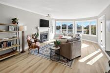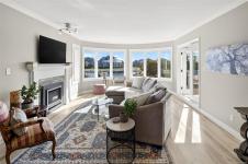 OCEANFRONT 2 BEDROOM CONDO - SONGHEES! Breathtaking harbour views from every principal room in this elegant 2-bed, 2-bath executive home at Songhees Point: steel & concrete building. Notable: 8’5 ceiling, open-concept, lux kitchen w stone counters, SS appliances, breakfast bar. Spacious living & dining rm w 7 bay windows, new gas fp & mantle, French doors to deck. Primary suite boasts ocean views & deck, walk-in closet, spa-inspired ensuite w radiant flr. 2nd bed/office & family rm w Murphy bed. Walk-in laundry rm. Updates: Luxury wide-plank flr, flat ceiling, fresh paint, soft roll UV blinds, lighting, 2 baths fully reno'd, glass shower, radiant flr, stone counter, faucets, all light fixtures. Lg storage, secure parking. Healthy strata! New gated courtyard entry, Guest suite, lounge, car wash, kayak & bike storage, courtyard, rooftop deck. BBQ, pet & rental-friendly. EV friendly. Step to the Inner Harbour. Walking paths to dining, shops, water taxi & bus.