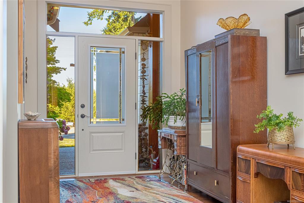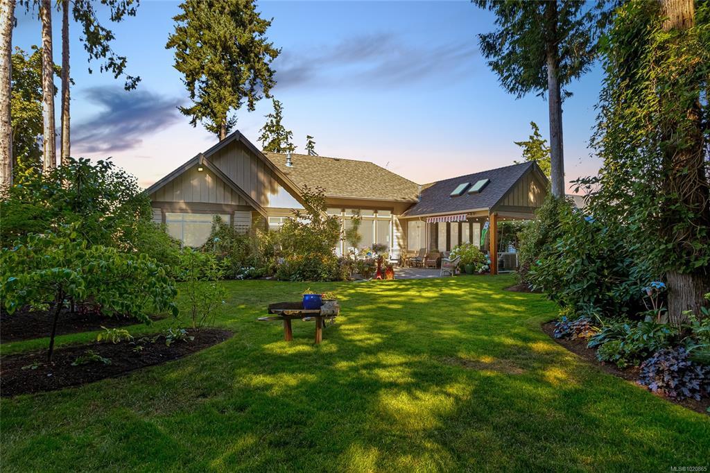 Gorgeous TODSEN built executive rancher tucked away on .49 acre located in Lighthouse County. One of the nicest lots in Nile Landing, with ocean glimpses & the beach just a short walk away, offering easy access to local shopping& amenities! This open-concept 3-bedroom + 2-bath home is filled with light from floor-to-ceiling windows and skylights. It boasts an 11' tray ceiling in the great room, a cathedral ceiling in the bedroom/den/office with a built-in desk & custom murphy bed w/shelving, engineered hardwood floors,&carpeted bedrooms throughout. A deluxe kitchen with granite countertops, island w/breakfast bar, custom cabinetry, pantry closet & quality appliances. The dining room doors open onto a private patio with south-facing views in a park-like setting. The covered patio has skylights & a propane BBQ connection. A fenced gardener's paradise yard w/raised beds & an arbour gate to the forest & creek below. This home is completed with a heated double-car garage with keyless entry.