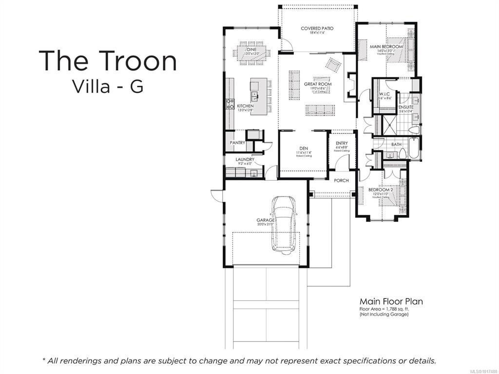 Introducing The Troon—a stylish 2-bed + den (or 3rd bed), 2-bath rancher by Bayshore Construction, located in the heart of the golf cart-friendly Pheasant Glen Golf Resort. This thoughtfully designed 1,788 sqft. single-level home offers bright, open-concept living with engineered h/w flooring and quartz countertops. The sun lite kitchen includes a large island, high-end appliance package & walk-in pantry—perfect for entertaining. Enjoy seamless indoor-outdoor flow with slider doors opening to a spacious south-facing covered patio. The large primary suite is a true retreat, with a walk-in closet and gorgeous spa-inspired ensuite. Built to BC Energy Step Code 4 with certified energy evaluation, this home also includes an TRANE heat pump, full landscaping package, fencing, and irrigation. Nestled near walking trails and just minutes from the greens, The Troon offers low-maintenance, resort-style living in one of Vancouver Island’s most desirable communities. Photos are of similar villa.