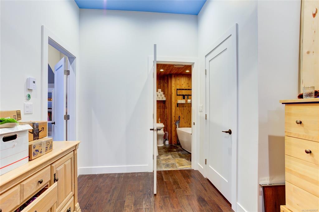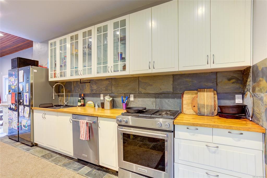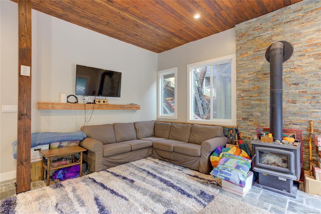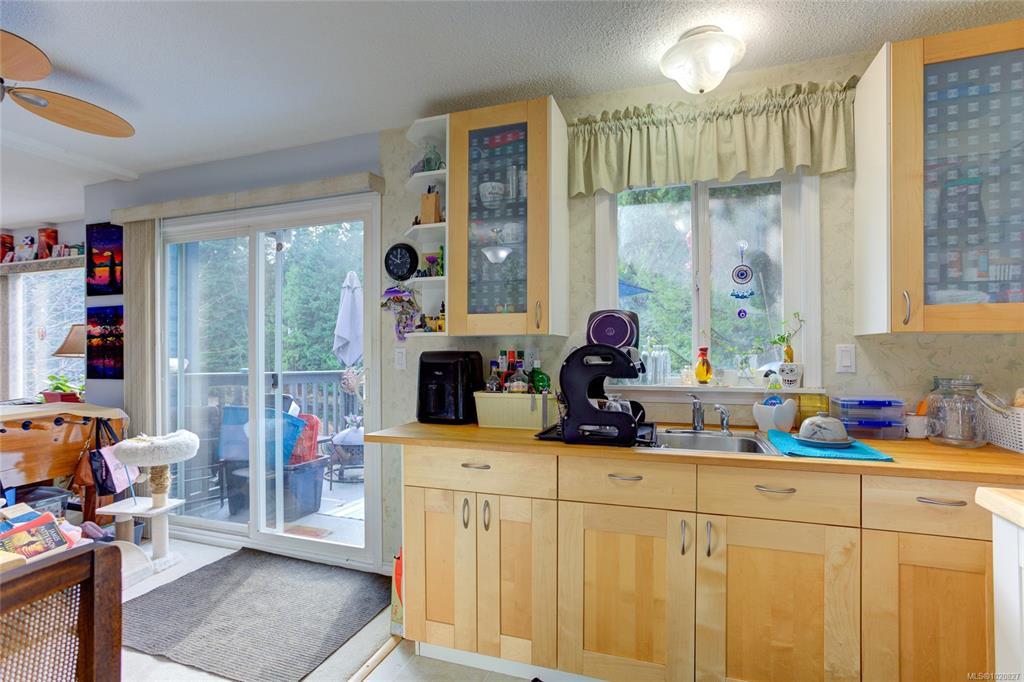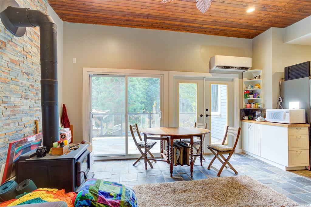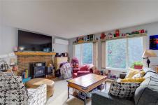 Investment or multi-generational living alert! Discover the natural beauty of your own private sanctuary in a prime Nanaimo location. Backing onto Trillium Park—and with Long Lake along with major city amenities just moments away—this versatile property offers two beautifully updated living spaces (up and down) plus a charming guest/studio micro-suite. Each suite has its own entrance and balcony with peaceful views of the pond and idyllic backyard. The upper level is bright and open, featuring 2 bedrooms and 1 bathroom. The lower level includes a galley style kitchen that opens to a spacious living area with high ceilings and abundant windows, along with 2 bedrooms and 2 bathrooms—including an ensuite with a relaxing soaker tub. With solar panels, a cozy woodstove, heat pump, thermal windows, and numerous updates throughout, this home is move-in ready and perfect for generating immediate rental income or accommodating extended family.