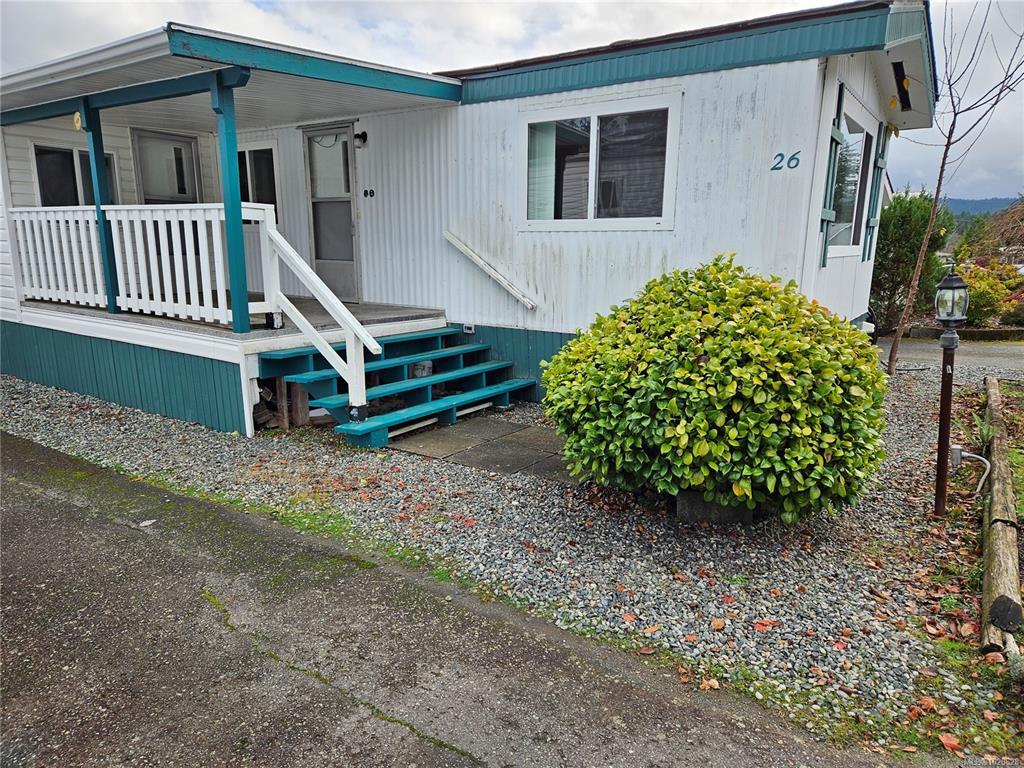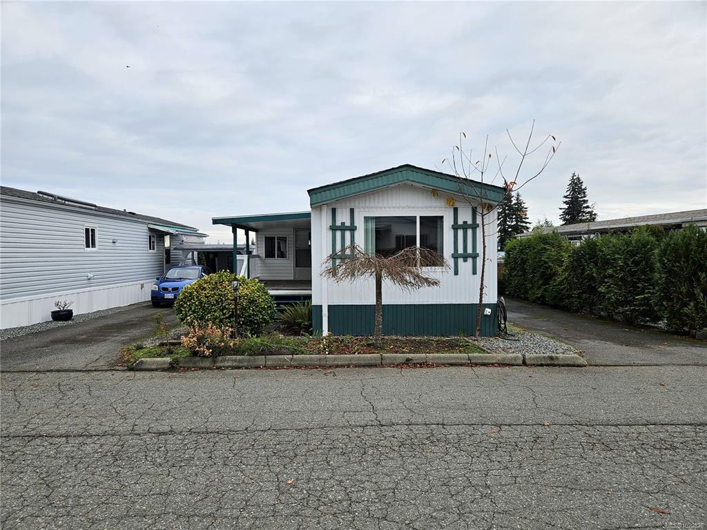 With its Mountain & Ocean views, Town & Country situated just south of the City of Ladysmith has to be one of the best managed mobile parks on Vancouver Island. In a community of 55+ its idyllic for anyone wanting to downsize, but still maintain an active lifestyle. The manufactured home is bright & cheery and boasts 2 bedrooms plus den with a full main bathroom, including a walk-in shower & cheater door to the Primary bedroom. Kitchen updates include newer cabinets & counter top plus a private covered deck along with window upgrades. A brand new heat pump installed in November 2025 is just waiting for its new owners to enjoy. A couple of moderate updates are still required here, but nothing major as the unit has a very solid structure. Bonus features also include a small detached workshop with carport. An active Community Centre along with an outdoor Seasonal Pool gives this park even more appeal. Don't miss out on the care free lifestyle of Town & Country, book your showing today!