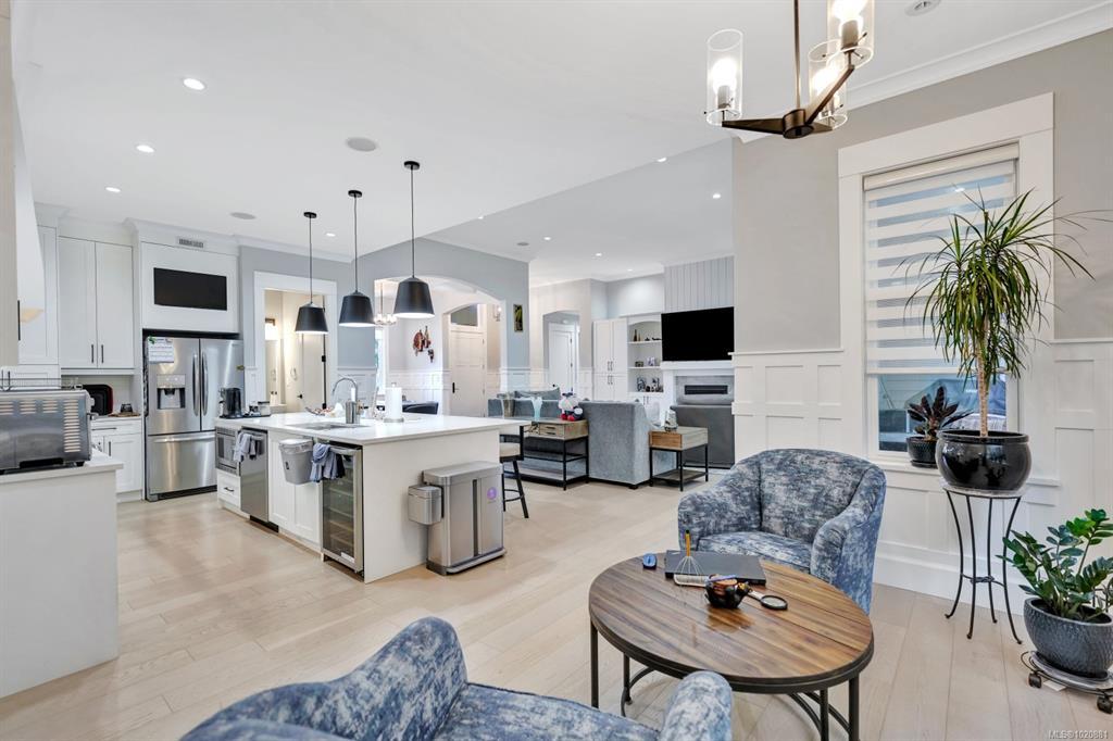 Elegant custom-built rancher in the prestigious Fairwinds Golf Resort community. Just 4–5 years old and still under new home warranty, this home showcases an open-concept design with high ceilings, crown moulding, built-in cabinetry, and a natural gas fireplace. The spacious kitchen features a large island, ideal for entertaining. Enjoy the private, low-maintenance backyard with natural rock landscaping. Triple-car garage plus RV parking with space for up to seven vehicles. Located on the desirable flat section of the golf course, walking distance to oceanfront parks with water access. Minutes from two marinas, the Fairwinds Golf Club, Wellness Centre, and scenic walking and biking trails. Experience luxury coastal living in one of Vancouver Island’s most sought-after communities. See the home in 3D virtual tour and book your private showing. All measurements are approximate and should be verified.