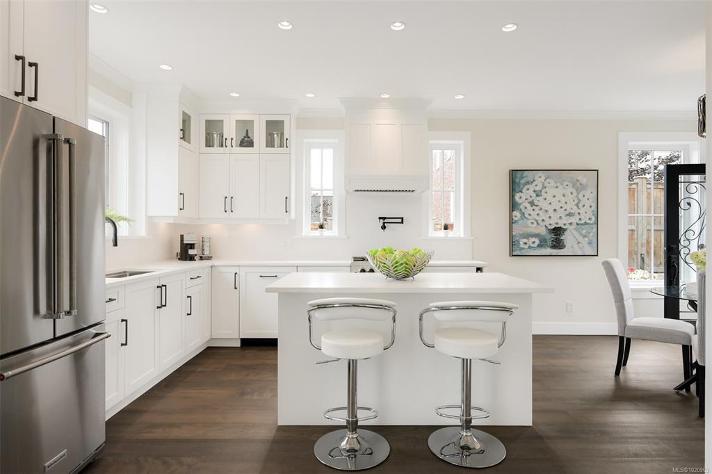 OPEN HOUSE SAT NOV 22ND 2-4PM Located in the heart of vibrant Vic West, this exceptional home built by Rayn Properties offers quality craftsmanship & high-end finishings throughout. The modern open layout features 9 ft ceilings, wide plank H/W floors, a gorgeous kitchen with quartz counters & a professional Blue Star gas range. The living room includes custom cabinetry & a gas FP. Upstairs you'll find 3 bdrms & two bathrooms, incl a beautiful Primary Bedroom with a walk-in closet & an ensuite with recycled Italian glass. The self-contained 2 bdrm suite on the lower level has its own laundry, a gas FP, vinyl plank flooring, & extra sound insulation. Some additional features include; 2 stunning custom built rod iron designed doors, premium quality carpet upstairs, dual zone heat pump with separate climate controls, & a lovely private patio. Just steps to Westside Village, the scenic Songhees walkway, the Market Garden, Banfield Dock, Galloping Goose Trail, & a short walk to downtown!