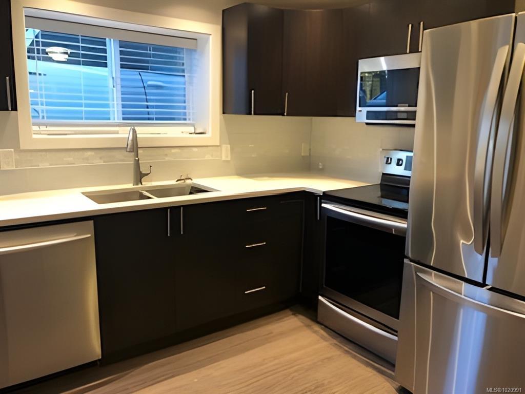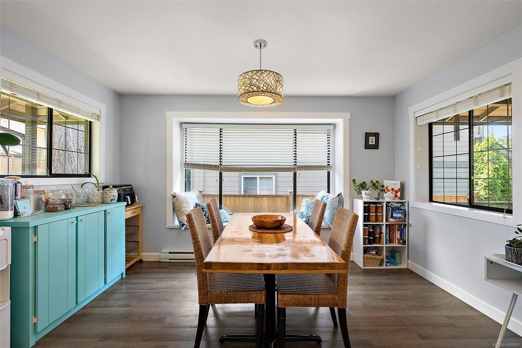 Beautifully maintained home in one of View Royal’s most connected & convenient neighbourhoods with income potential! This 5-bed, 3-bath property offers a versatile layout featuring a spacious main-level living area & a self-contained suite below. The main floor showcases a tastefully updated kitchen complete w/ stainless steel appliances & a functional eat-in island, flowing into a bright & comfortable living space w/ 3 beds, 2 baths, lower kitchenette + flex space. The lower level also includes a 2-bed suite with its own separate entrance—ideal for extended family, added income, or multi-generational living quarters. The lot itself is a true standout—flat, sunny, & private w/ lovely curb appeal, welcoming front porch, & mature privacy hedging. Tucked on a quiet street, yet just steps from the Rail Trail, View Royal Park, Portage Inlet, & Admirals Walk Shopping, this is a rare opportunity to enjoy flexible living in a family-friendly neighborhood with everything at your fingertips.