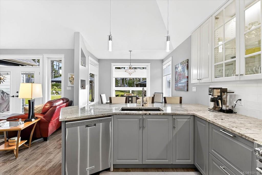 Discover this beautifully maintained, like-new home offering the perfect blend of privacy and convenience. Set on 0.9 of an acre, the property is tucked away and offers thoughtfully lanscaped grounds and mature trees all supported by a full irrigation system. Despite its private feel, you’re just minutes from all amenities. Inside, the bright, modern layout features 3 bedrooms, 2 bathrooms, and a spacious bonus room, ideal for a media room, home office, or guest suite. The open-concept main living area includes a contemporary kitchen and a welcoming dining/living space filled with natural light that opens up to the patio .Outside, you’ll find a large finished detached shop with attached over-height RV parking, a greenhouse with toolshed, and an electrical shed with extra storage. The expansive yard offers endless possibilities—garden, entertain, expand, or simply relax and enjoy the peaceful surroundings. A move-in-ready property offering space, beauty, and exceptional convenience.
