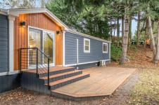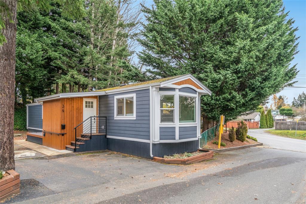 A newer built architectural engineered 2 bedroom custom mobile in 55+ park sitting on a city size fenced lot, with extra parking. Its vacant and Move in Ready. Truly executive styling is apparent throughout this spacious and bright show stopper. Both decks are brightly lit. Fully modern kitchen comes with gorgeous cabinets, under cabinet lighting, pot-lighting, quartz counters, tiled backsplash and stunning range hood. All laminate flooring done on the Bias for visual appeal. Complete with electric fireplace and attractive mantle. The bathroom tiling is also on the Bias and fixtures are jaw dropping beautiful. A washer/dryer alcove , fresh-air exchange and ductless heat pump are nice. Window blinds are Bi-Directional. Inviting entrance with classy duel closets. Hardie plank siding over rain-wall and custom trim thru-out. An exemplary remodel completed in 2022 with Architectural designed, engineered, blueprinted and permits that meet or exceed current codes. Done to absolute perfection.