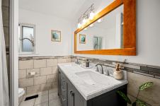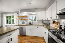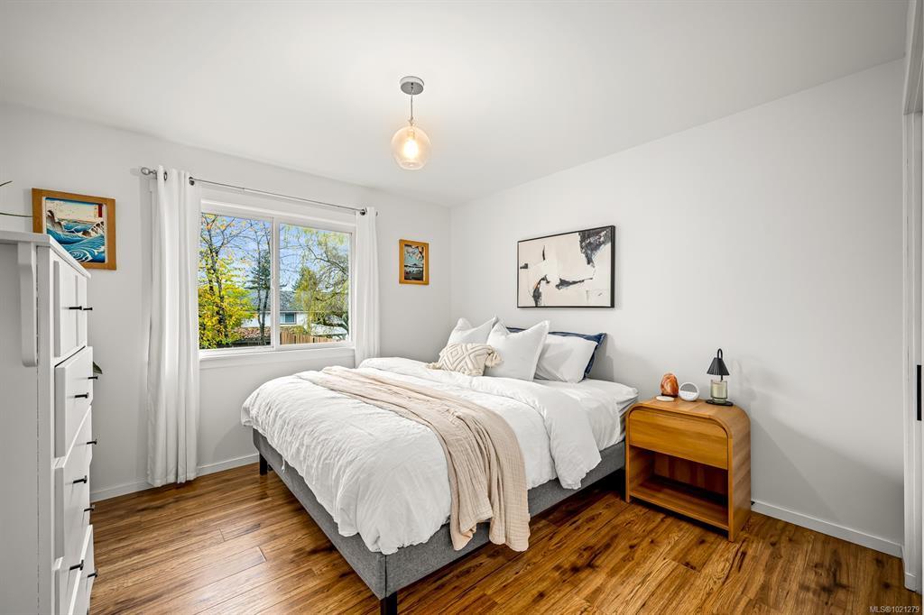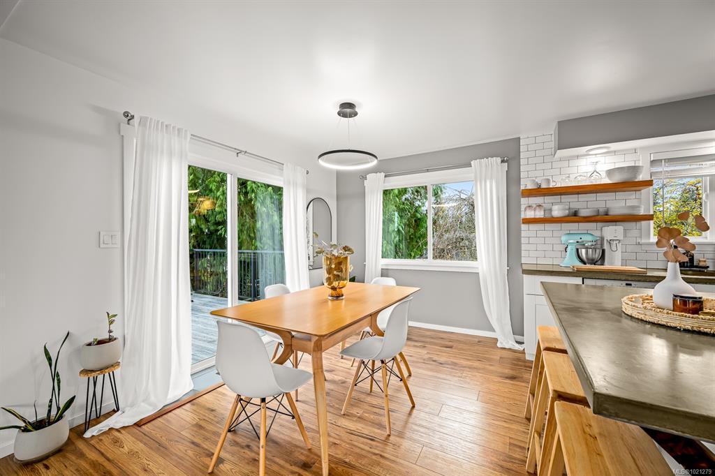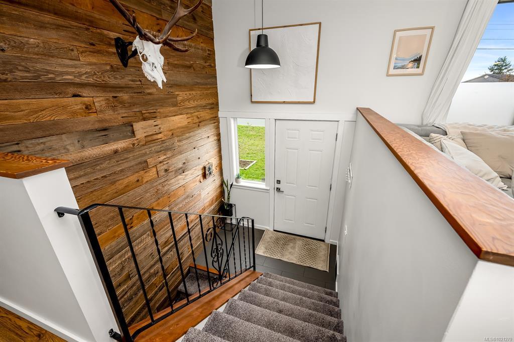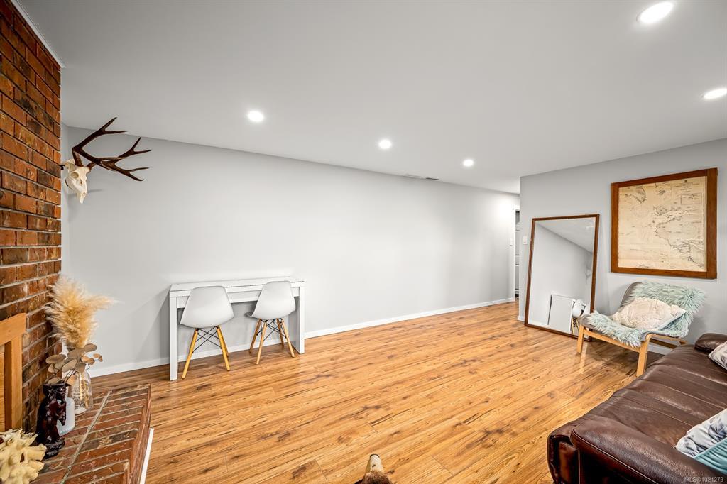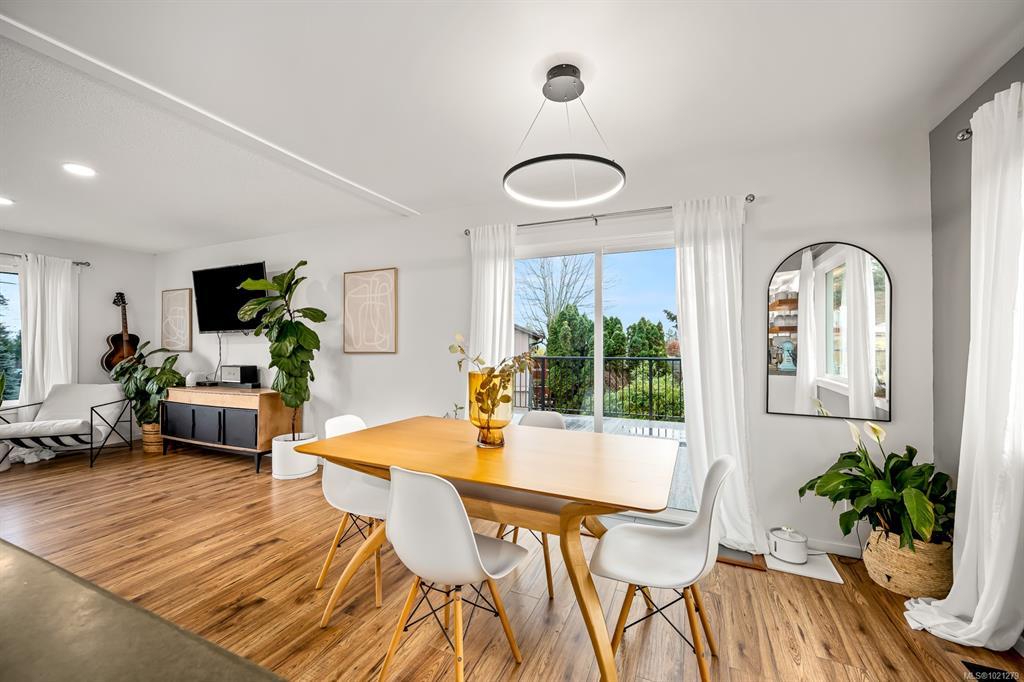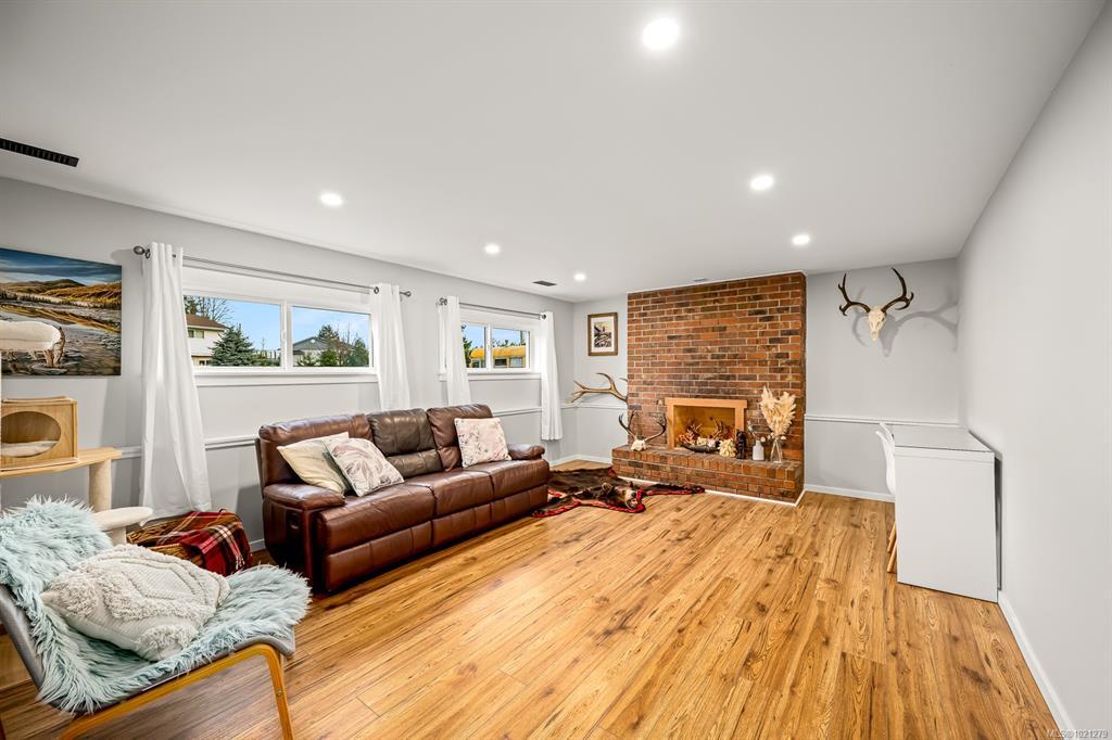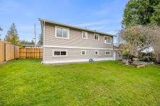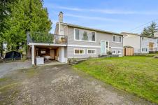 Discover this charming split-level home in a desirable Campbell River neighbourhood, offering ocean glimpses, a flexible layout, and numerous modern updates on a spacious 0.26-acre lot. This well-maintained property features new siding, soffits, updated windows, and modern flooring on both finished levels. The bright main floor includes an inviting living area and a refreshed kitchen with updated cabinets, concrete countertops, stainless steel appliances, and a full tile backsplash. Two comfortable bedrooms, a renovated 4-piece bathroom, and access to a large deck with new vinyl complete the upper level.