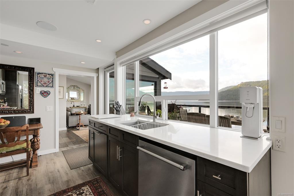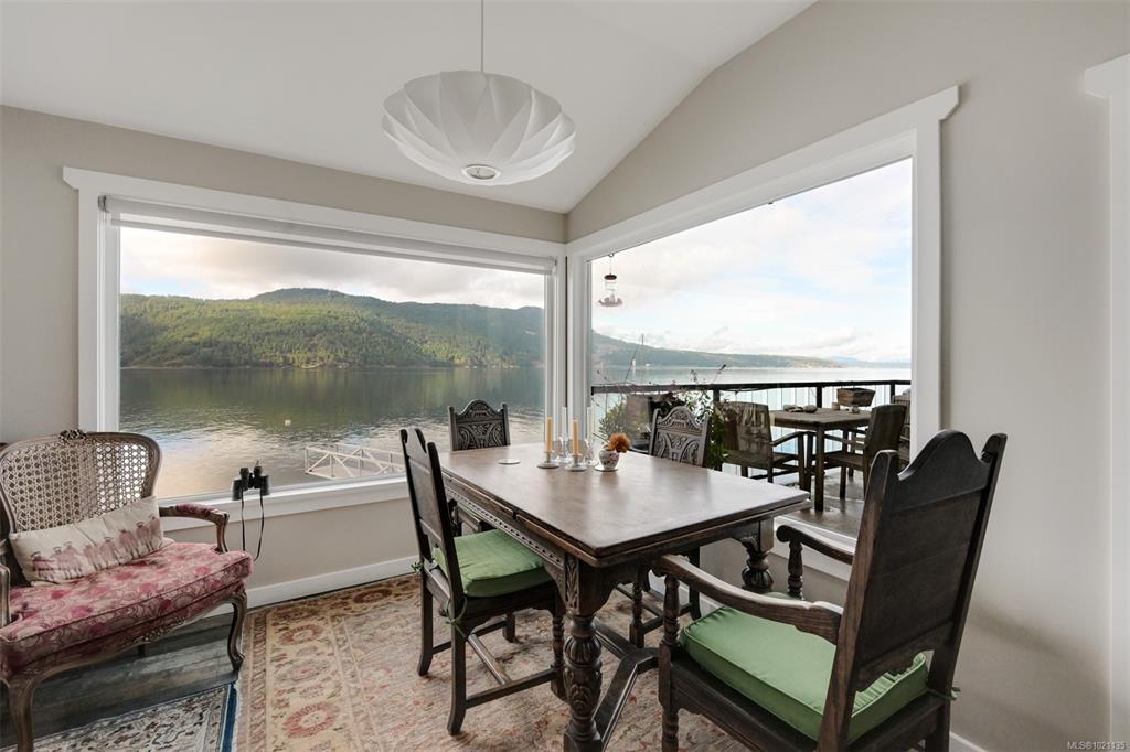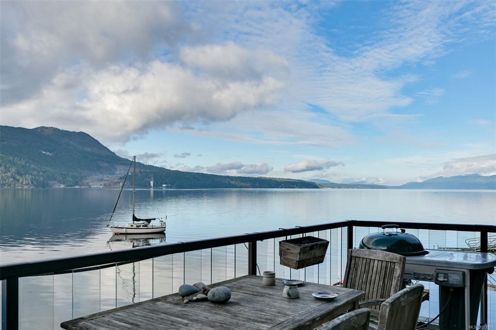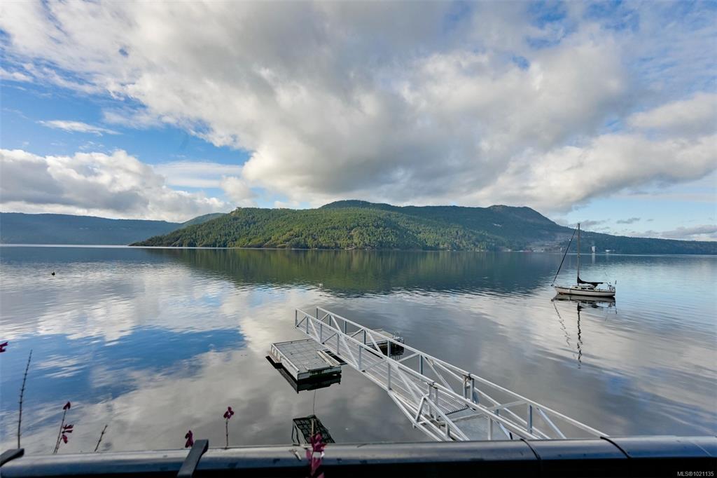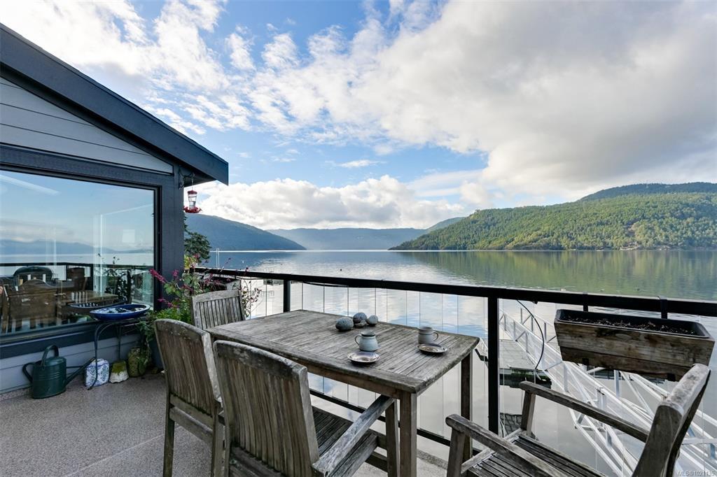 Willis Point WATERFRONT. Stunning, 2019-built 2-bed, 3-bath custom home by Yager Construction, with spectacular oceanfront views from every room. 2 balconies, WHARF & DOCK. Deep water moorage with Foreshore Rights. Saanich Inlet is a glacially carved fjord, lying between the Saanich Peninsula and the Malahat, enjoying a warm surface yet deep cool depth of 226 meters, attracting an abundance of marine life: from otters to sealions, herons to eagles. Calm waters draw paddleboarders, anglers, prawners and pleasure craft. Swim from the dock, entertain on the wharf, & stargaze from the hot tub. A close-knit neighbourhood with an active community centre and volunteer fire dept. Outside the BC Spec Tax Zone!!