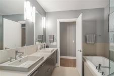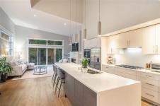 West Coast living at its finest in this beautifully crafted Contemporary home at The Ridge, set on a large fenced lot backing onto protected forest and parkland with direct access to endless walking trails. A bright, open layout features a spacious great room with large windows, engineered hardwood flooring, and double sliding doors to a generous deck. The gourmet kitchen impresses with Fisher & Paykel double wall ovens, gas cooktop, double dishwasher, quartz countertops, beverage fridge, large island and built in pantry. The primary bedroom feature French door deck access, a spa ensuite with soaker tub, walk-in rain shower, heated tile floors, and a custom millwork walk in closet. A den, powder room, laundry room, and well-designed mudroom connect to the double garage. The open staircase overlooks the main living area and leads to two additional bedrooms and a 5-piece bath with heated floor. Exceptional home in this warm connected community where the sounds of the city melt away.