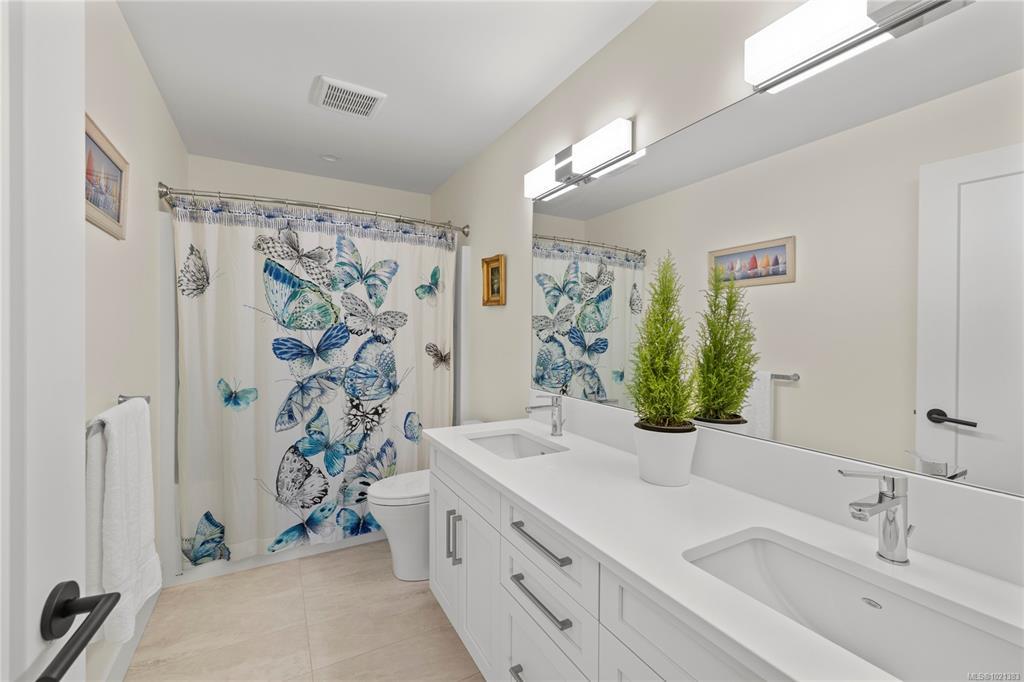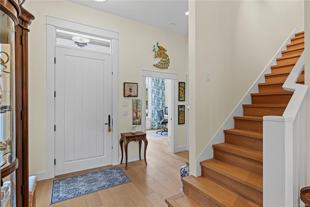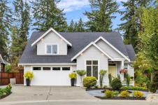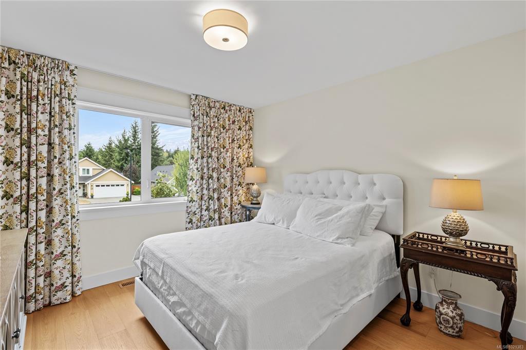 Set on a quiet, well kept cul-de-sac, this beautifully finished home combines luxury details with easy day to day living. Inside, 11 foot ceilings and expansive windows create a bright, airy main level with an open concept plan centred around a standout kitchen with waterfall quartz, ceiling height cabinetry, farmhouse sink, and premium Wolf and Sub Zero appliances. The living and dining areas feel refined yet comfortable, highlighted by a custom stone fireplace and built ins. The main floor offers a versatile front den/bedroom, powder room, laundry, and a private primary suite with beautifully appointed five piece ensuite. Upstairs are two generous bedrooms, both with walk in closets, and a full bath, ideal for guests or family. Outside, mature landscaping, a garden shed, and this sought after location put you close to sandy beaches, walking trails, and Parksville amenities. A thoughtfully designed, move in ready home with timeless appeal and quality at every turn.