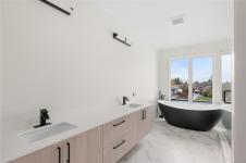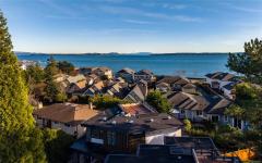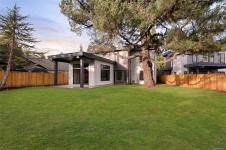 A statement in modern coastal luxury, this exceptional new build rests on a 7,244 sq ft lot in sought-after Sidney by the Sea. Located on a quiet cul-de-sac, just steps to the Lochside oceanfront promenade and minutes to the iconic Beacon Ave, this home offers an elevated and walkable lifestyle that's next to none. Expansive windows & 12' ceilings fill the Southern exposed great-room with abundant natural light. Boasting a refined gas fireplace & easy access to the beautifully landscaped & fully fenced yard, it's the perfect focal point of the home. A chef-inspired kitchen showcases high-end appliances, custom millwork and premium finishes. The versatile main-floor flex room adapts effortlessly as an office, media space, fitness studio or a comfortable 4th bedroom. Upstairs, a serene primary suite features soaring ceilings and a spa-inspired ensuite. A private rooftop patio captures sweeping ocean views and is ideal for elegant entertaining.
