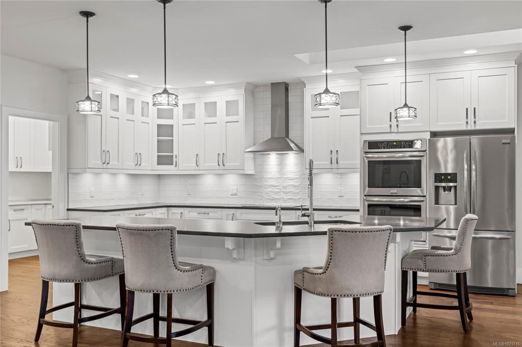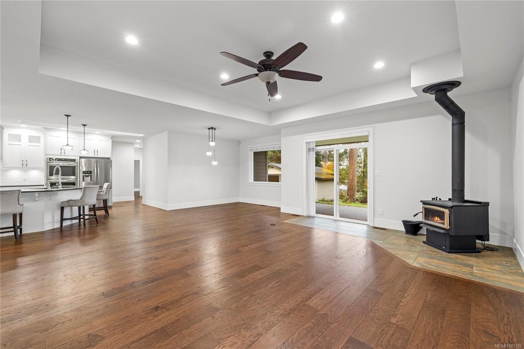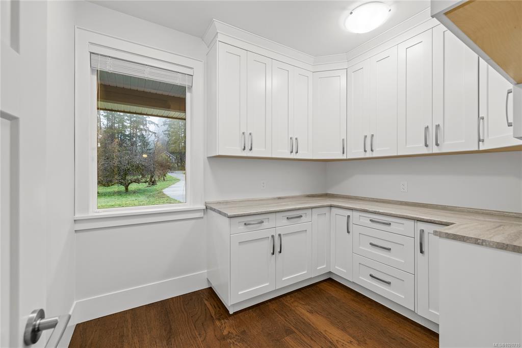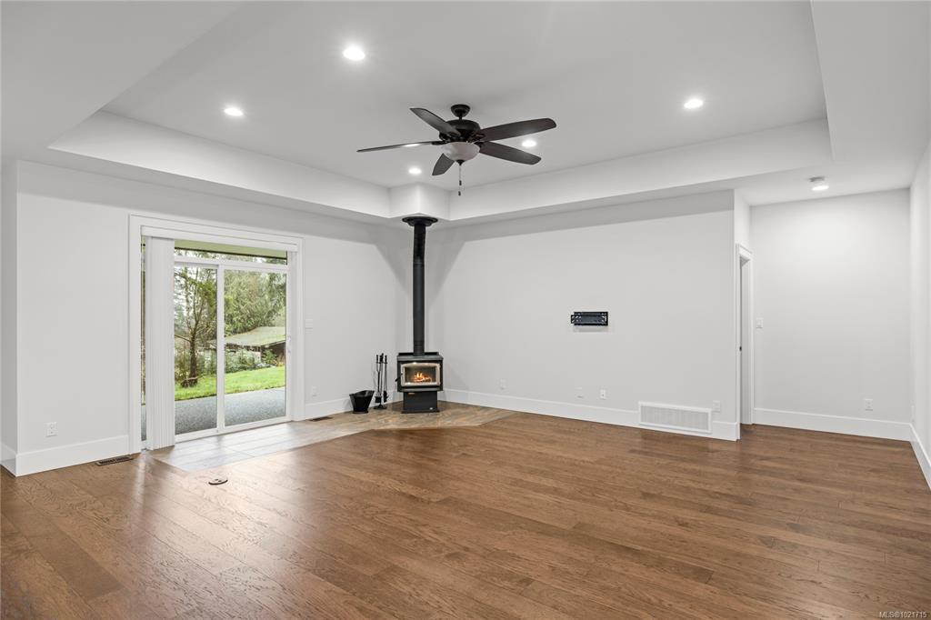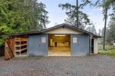 Gorgeous Modern Home With Detached Workshop in Quiet South Nanaimo Neighbourhood, Experience stylish contemporary living on a private 1-acre lot with mature trees and plenty of space. This freshly painted home features a bright, open great room with a trayed ceiling and a cozy, efficient wood stove. The gourmet kitchen is equipped with a large island, solid surface countertops, and dual ovens—perfect for entertaining. The primary suite offers a walk-in closet and a luxurious five-piece ensuite, while two additional bedrooms share a Jack-and-Jill bathroom. A flexible office or bedroom with a walk-in closet provides extra storage or workspace. Step out to the partially covered patio for seamless indoor/outdoor living. Additional highlights include a large garage with sink, a detached workshop/studio, and a spacious unfinished 6 ft crawl perfect for a hobby enthusiast and tons of storage.