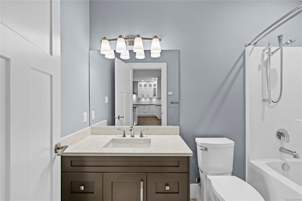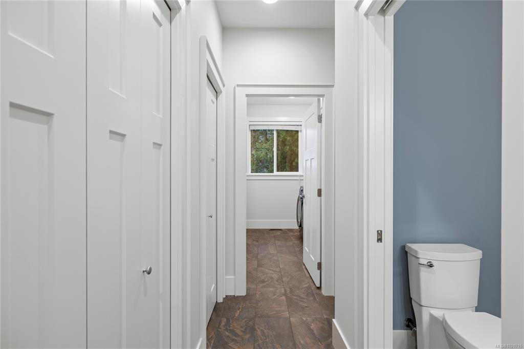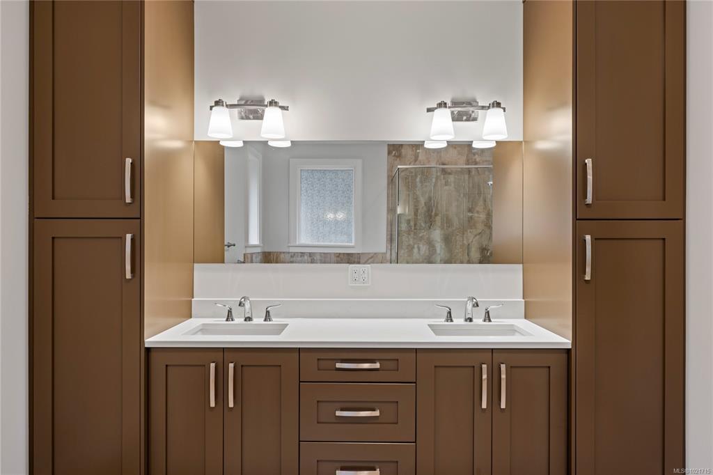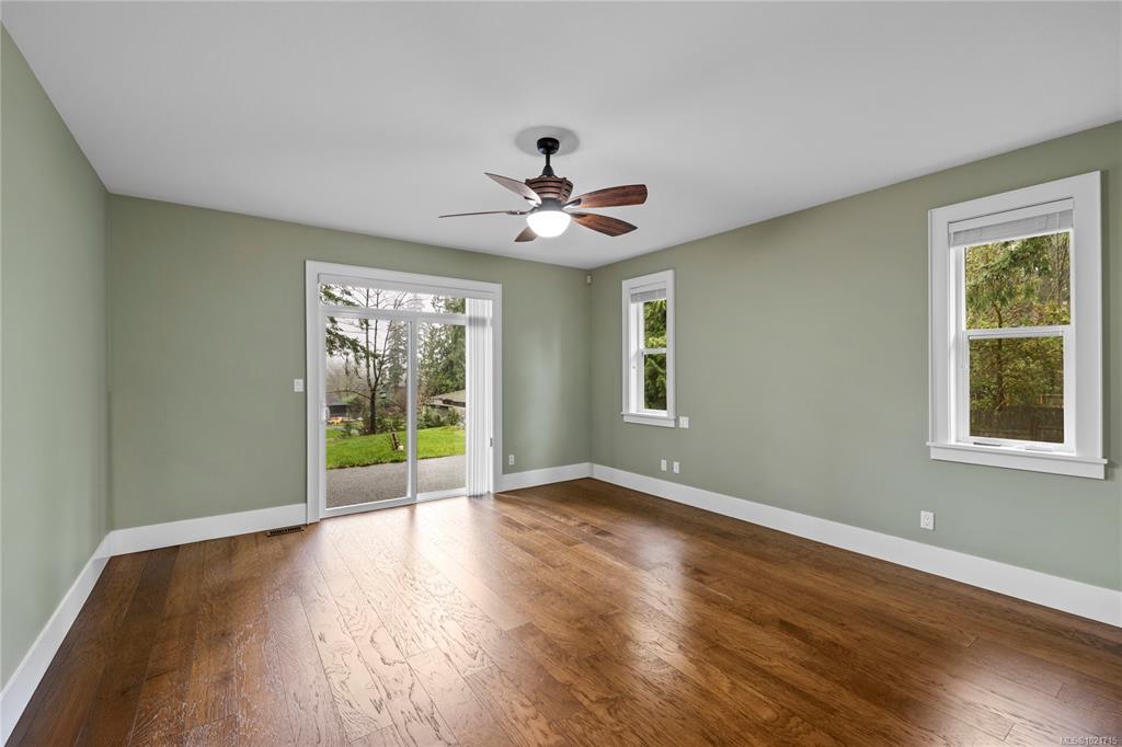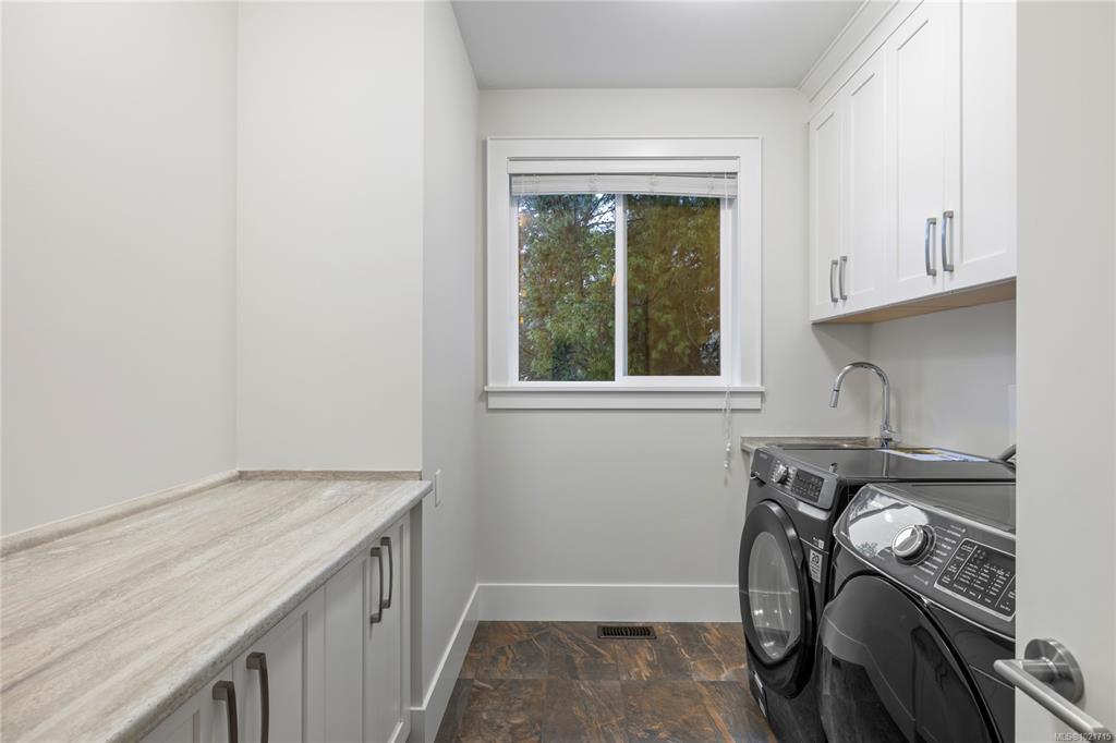 Gorgeous Modern Home With Detached Workshop in Quiet South Nanaimo Neighbourhood, Experience stylish contemporary living on a private 1-acre lot with mature trees and plenty of space. This freshly painted home features a bright, open great room with a trayed ceiling and a cozy, efficient wood stove. The gourmet kitchen is equipped with a large island, solid surface countertops, and dual ovens—perfect for entertaining. The primary suite offers a walk-in closet and a luxurious five-piece ensuite, while two additional bedrooms share a Jack-and-Jill bathroom. A flexible office or bedroom with a walk-in closet provides extra storage or workspace. Step out to the partially covered patio for seamless indoor/outdoor living. Additional highlights include a large garage with sink, a detached workshop/studio, and a spacious unfinished 6 ft crawl perfect for a hobby enthusiast and tons of storage.