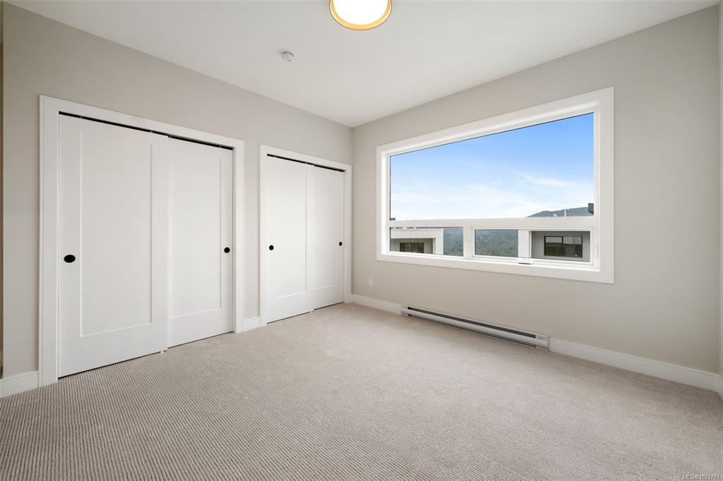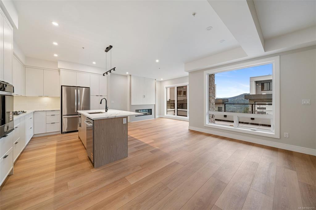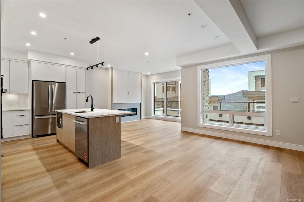 Experience elevated living in this spacious townhome featuring 3 beds, 3 baths, & over 1,700 sq ft of thoughtfully designed space. The main level boasts open concept living with spacious dining & living areas, a beautifully designed kitchen, bathroom & cozy bedroom. Upstairs you'll find the luxury primary bedroom featuring a walk-in-closet & ensuite, second bedroom, 4 piece bathroom, laundry room, & flex space perfect for a home office/gym. Enjoy the tranquility of the Ridge on the peaceful lower level patio & second level balcony. This home includes secure underground parking, storage locker, a multi-head ductless heat pump for heating & cooling, fireplace, & a Whirlpool appliance package with wall oven & gas range. The strata amenities include gym, community gardens, a bike and dog wash, & an outdoor patio. Located near Bear Mountain, you’ll enjoy two Championship Golf courses, endless recreational opportunities, & convenient shopping.