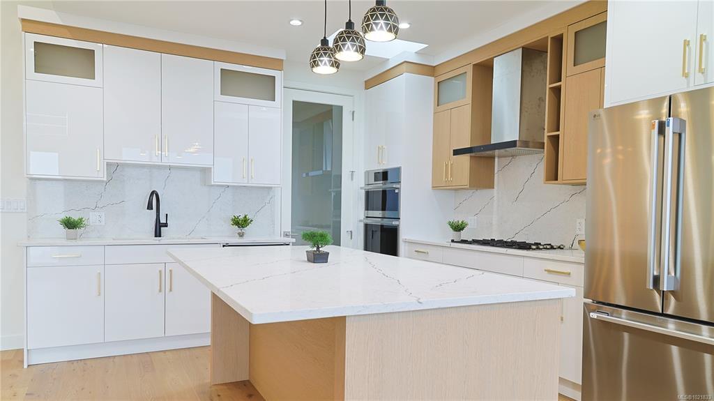 Experience breathtaking ocean & mountain views from all levels of this brand-new home with 8 beds & 6 baths plus media room. The main level offers an open-concept design with a gourmet kitchen, quartz island, walk-in pantry(or spice kitchen) & spacious dining area, plus a cozy gas fireplace & a large rear patio perfect for enjoying sunsets. The primary bedroom includes a walk-in closet and 4-piece ensuite. The middle floor, with a separate side entrance, features 4 bedrooms, 2 bathrooms, a walk-in closet, additional laundry, a generous rec room with wet bar, storage, & a second patio. The 2-bedroom legal suite on the lower level has a private entrance, separate laundry, & hydro meter. Extras include A/C, EV charger & rough in for security cameras, rough in for Central Vacuum, & landscaped front yard. Close to schools & shopping, this home is move-in ready with occupancy permit approved. All appliances are already installed. All measurements approximate; buyer to verify. GST applicable.