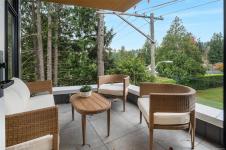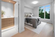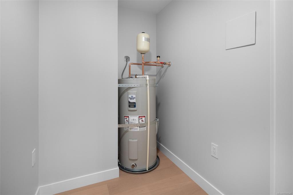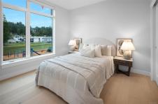 Experience the beauty of Cordova Bay from this exceptional 2-bed/2-bath southwest corner home in Tiller & Grace, the area’s newest luxury building. Built by GT Mann, unit 303 is nestled beside mature cedar trees, offering remarkable privacy while still enjoying abundant west-facing light. The open-concept living, dining, and kitchen space provides an effortless flow for everyday living. Bedrooms are thoughtfully designed with custom built-ins by Harbour City Kitchens, enhancing both comfort and functionality. Premium features include a WOLF induction cooktop and oven, panelled Fisher & Paykel fridge/freezer, Fisher & Paykel drawer dishwasher, and rift-cut white oak cabinetry with solid birch dovetail drawers. Fully ducted air conditioning ensures year-round comfort. In-suite storage, a separate storage locker, and one parking stall are included, with optional EV charging available. A west-facing covered patio offers the perfect place for outdoor dining or enjoying the sunset.