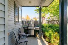 Fully renovated 2007 built 3 bedroom 2 full bath townhome with detached garage. Well run 4 unit strata has friendly neighbours, allows 1 pet any size & fresh exterior fascia, repair & full paint. Intimate atmosphere set down from street level with easy level rear access (garage encloses the rear off a quiet alley). High quality hardwood floor & new trim span the rancher style home. The kitchen gleams with new quartz island eating bar, tile backsplash, stainless appliances, black fixtures & timeless white cabinetry. Expansive primary bedroom enjoys both a full ensuite & big walk-in closet with access to a crawl space that runs beneath the entire unit. 2 more bdrms conveniently located at the back by the other full 4pc bath. Large fully fenced shared yard with grass, roses, magnolia & producing cherry tree! Set in a walkable location steps to downtown, the waterfront, shopping & Hullo ferry. Unrestricted rentals make this a perfect investment. Move-in ready with quick possession possible