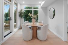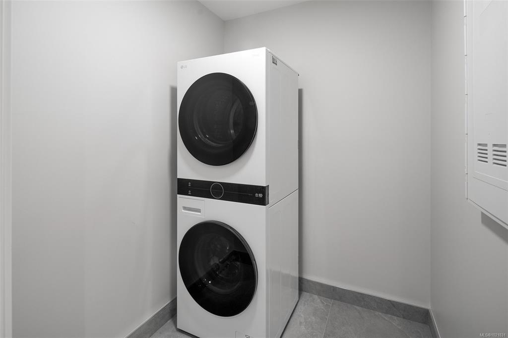 Discover 206 at Tiller & Grace — Cordova Bay’s newest luxury building — a 1,015 sq.ft. northwest corner 2-bed/2-bath home built by GT Mann with exceptional craftsmanship throughout. This efficient open-concept layout offers a spacious living, dining, and kitchen area filled with warm west-facing light. Bedrooms are thoughtfully placed on opposite sides of the home for comfort and privacy. Premium features include a WOLF induction cooktop and oven, panelled Fisher & Paykel fridge/freezer, Fisher & Paykel drawer dishwasher, and Harbour City Kitchens millwork with rift-cut white oak cabinetry and solid birch dovetail drawers. Enjoy year-round comfort with fully ducted air conditioning. Parking and storage are included, with optional EV charging available. A perfect home for those seeking a foothold in an elevated, prestigious building just a 5-minute walk to the beach.