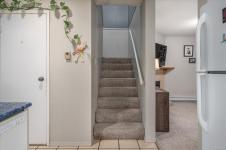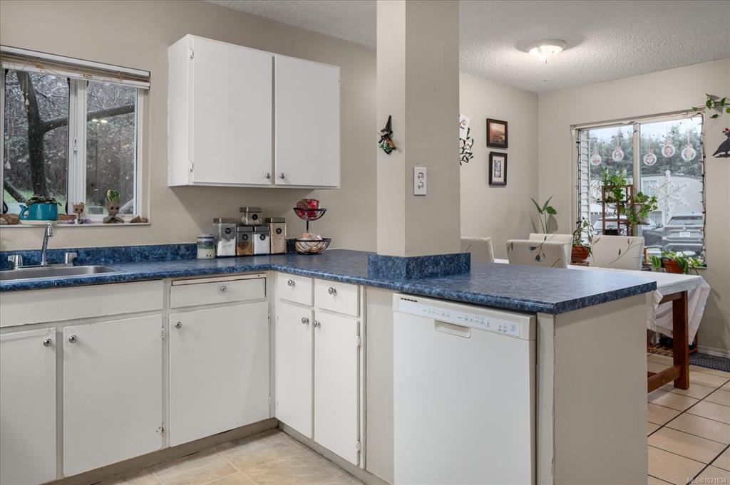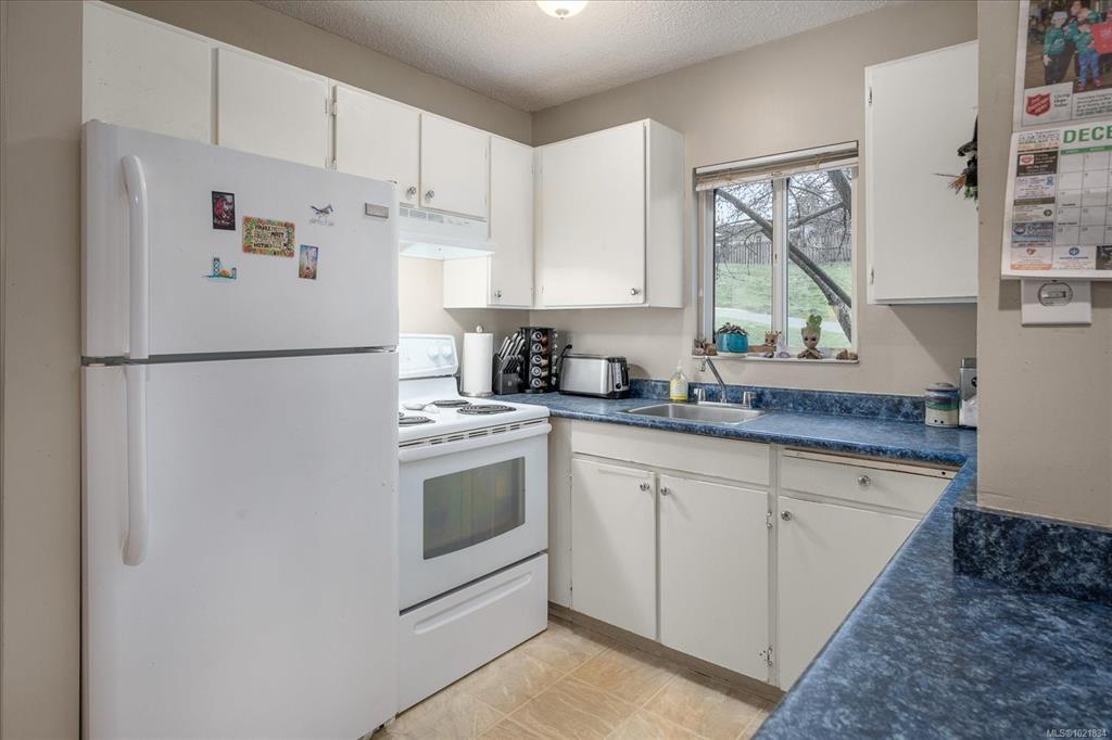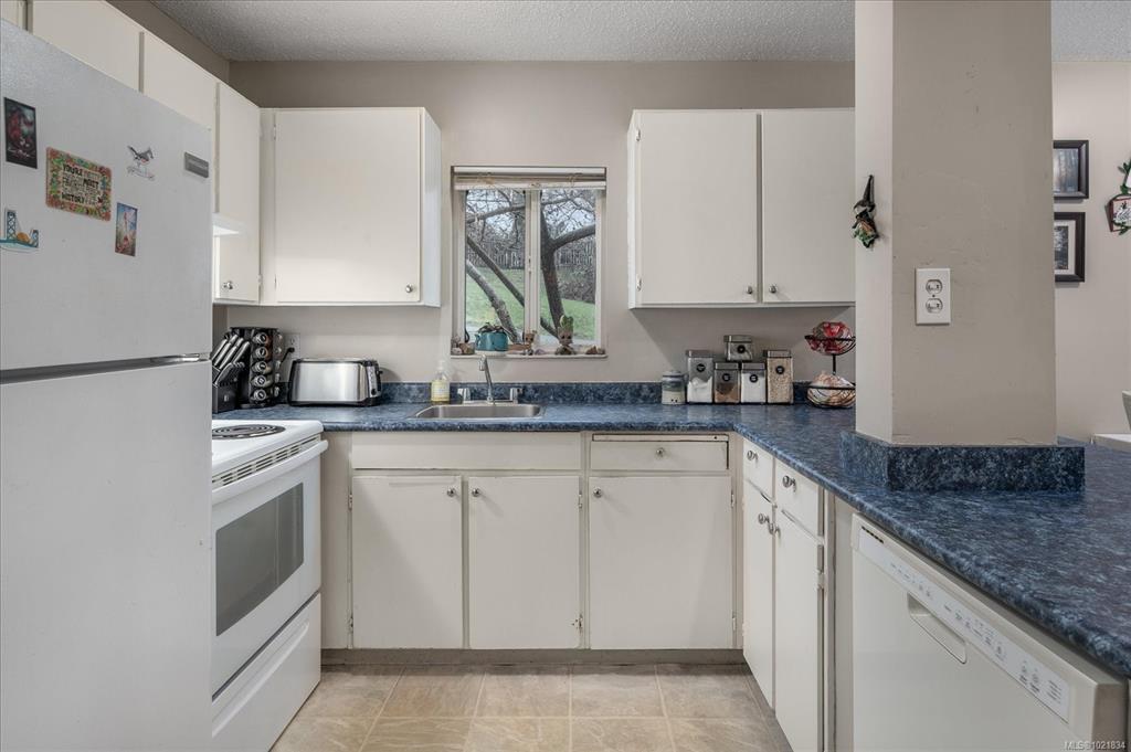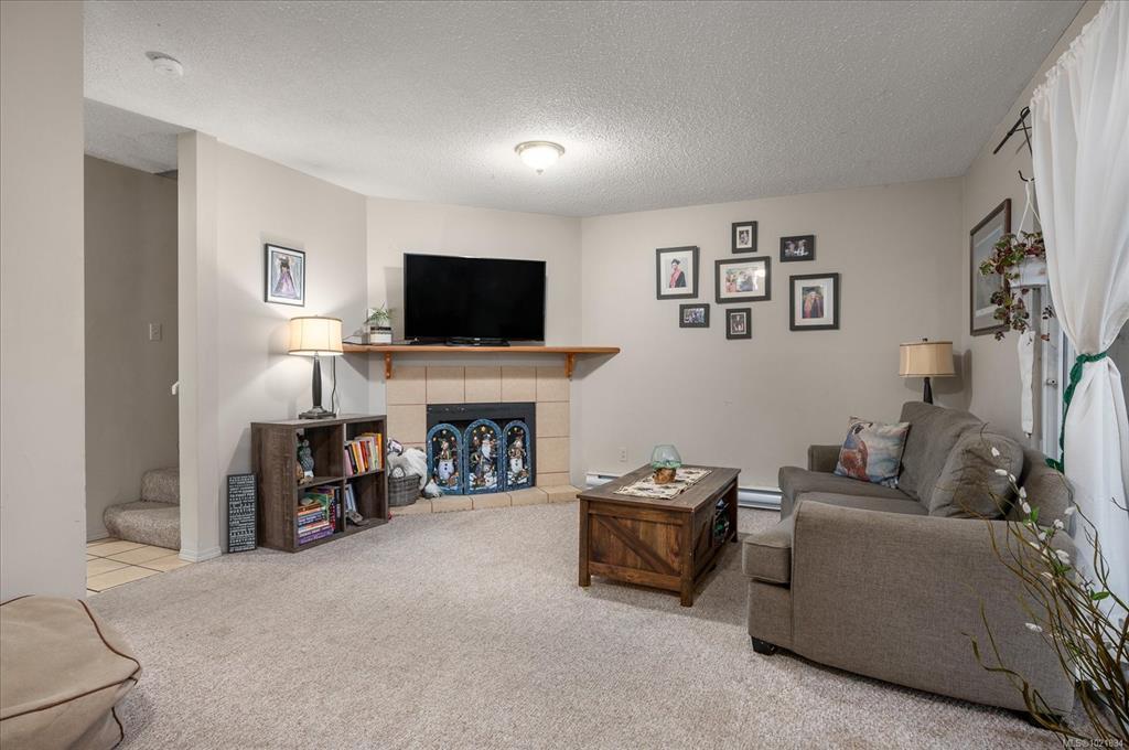Spacious and well-located, this 3-bdrm, 1.5-bath townhome sits in the heart of the University District & offers a functional layout with excellent potential. The main level features a 2-pce bthrm, a generous kitchen with ample storage, plenty of counter space & an eating bar, along with a dedicated dining area. A bright living room with large windows, a fireplace feature accesses the backyard patio. Upstairs are 3 bedrms, incl. a primary with its own private balcony, plus a full bathroom & conveniently located laundry w/ brand-new washing machine. This well-managed complex has no age restrictions and allows rentals & cats, making it a smart investment opportunity. Located in a quiet residential area yet just minutes from VIU, shopping, schools, transit, parks & recreation, this home is ideal for students, investors, or anyone looking to enter the market at an affordable price. A covered parking stall & storage are also included. Data & measurements approximate, verify if important.