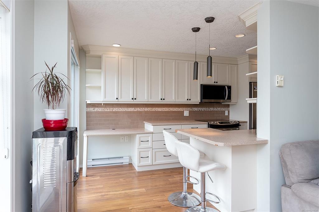 Best value in the complex currently $41,000 below assessment. This top Floor Two bedroom & two bathroom unit is one of the nicest units in the complex, this spacious south facing suite is well located, only a two minute walk from all the amenities and dinning experiences of the Uptown Shopping Centre. The dining area is open to the living room, which features a cozy fireplace & balcony. The updated kitchen includes plenty of cupboard space, a built-in desk & stainless-steel appliances. The master bedroom boasts a separate balcony, 4pc ensuite bath, a walk-through closet with custom closet organizer, large windows with plenty light & immaculate laminate flooring throughout. A great patio area and 1 secure underground parking and storage. A fantastic location steps to shopping, bus routes, schools, recreation, and the Galloping Goose Trail & only minutes to Downtown Victoria. Updated Telus Fibretech and new hot water tank in 2023. Child and pet friendly & rentals are allowed.