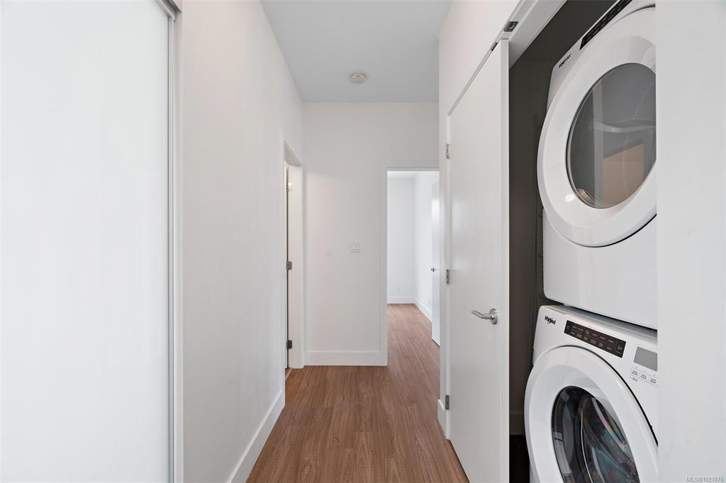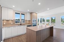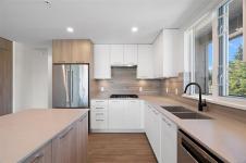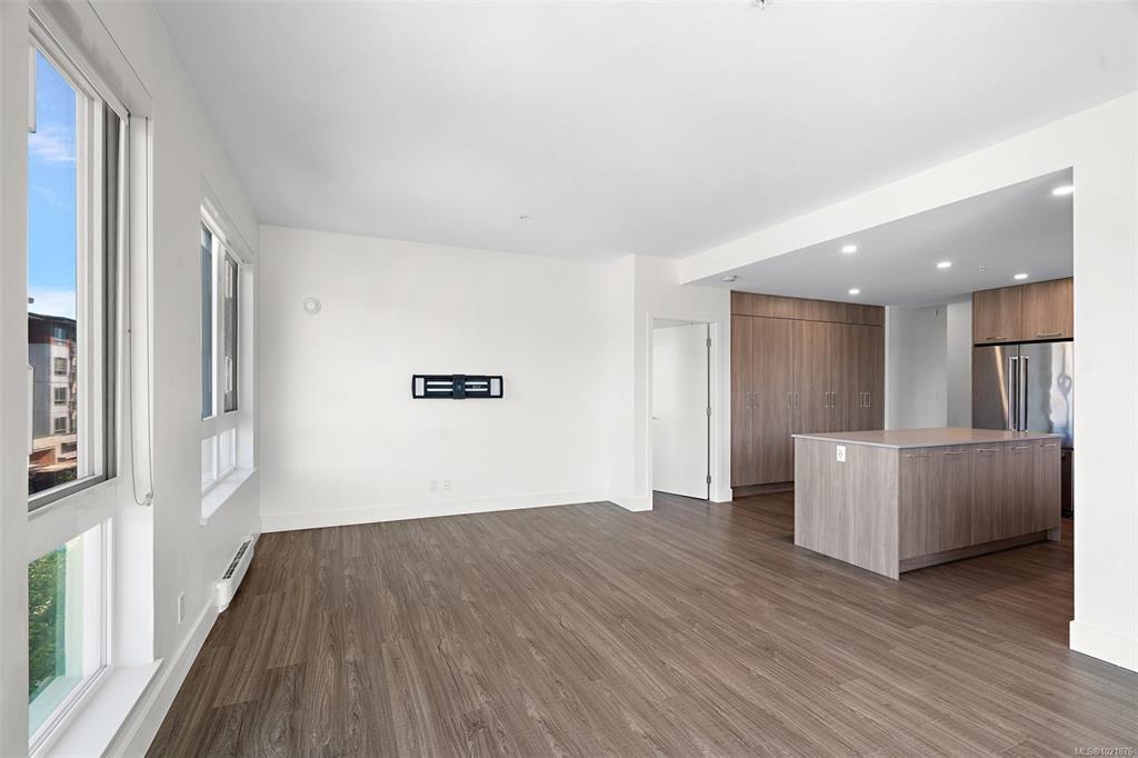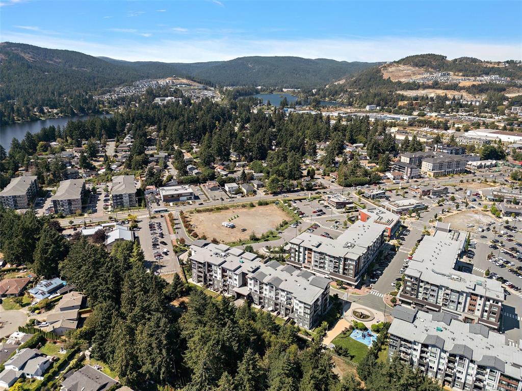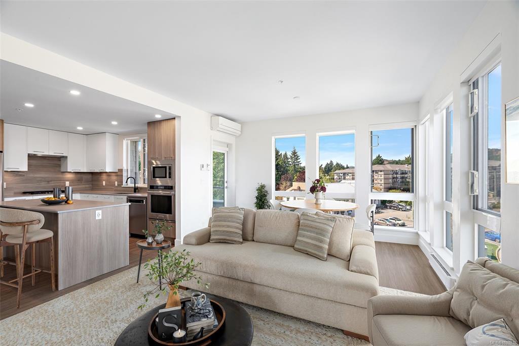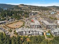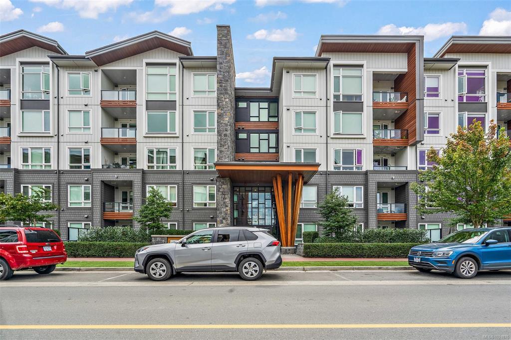 Welcome to Belmont Residences! This bright 1,105 sqft corner unit offers 3 bdrms/2 baths and includes two rare parking spots. The primary suite features a spa-inspired ensuite and walk-in closet. Large windows fill every room with natural light, and the open-concept layout showcases a gourmet kitchen with a spacious island, SS appliances, gas cooktop, ample storage, and a patio with BBQ hookup. With no shared walls except within a closet, this home feels exceptionally private. Additional perks incl. a heat pump, in-suite laundry, and dedicated storage. Building amenities feature a terraced patio with BBQ, firepit lounge, kayak and bike storage, pet wash station, and access to the Belmont Club. Steps to Belmont Market, the Galloping Goose Trail, and transit, this walkable community offers a vibrant, connected lifestyle in a prime location. This walkable neighborhood offers an active urban lifestyle with vibrant local amenities & community spaces designed for connection & easy commuting!