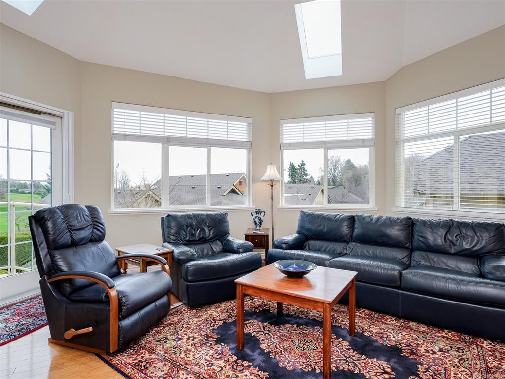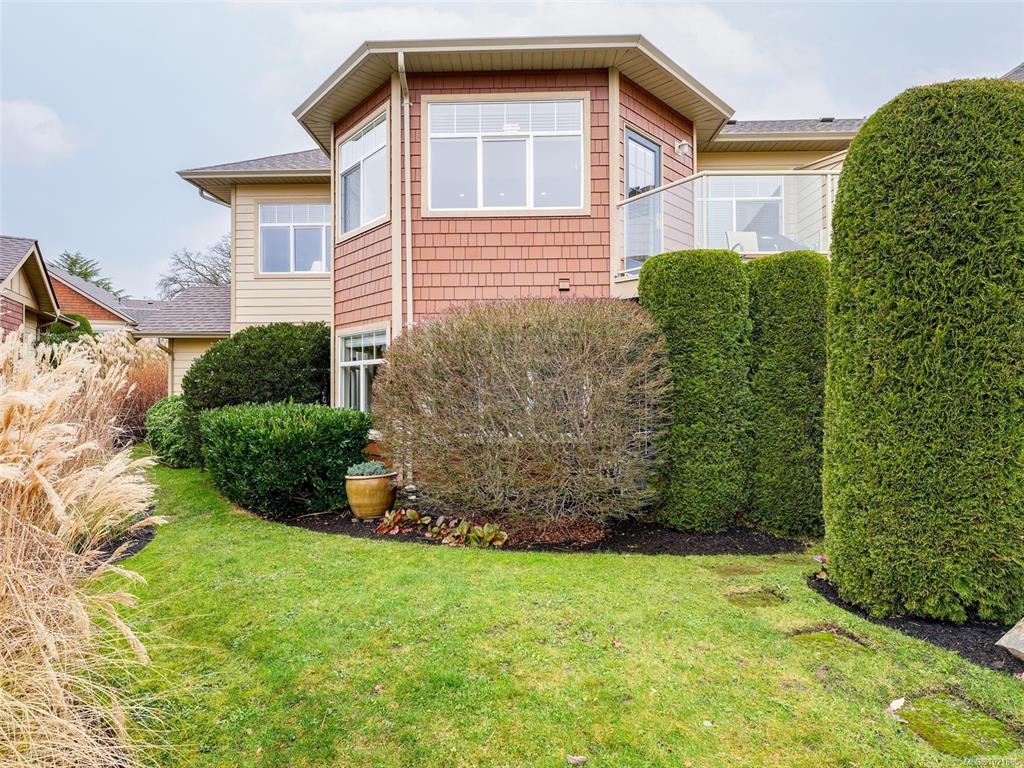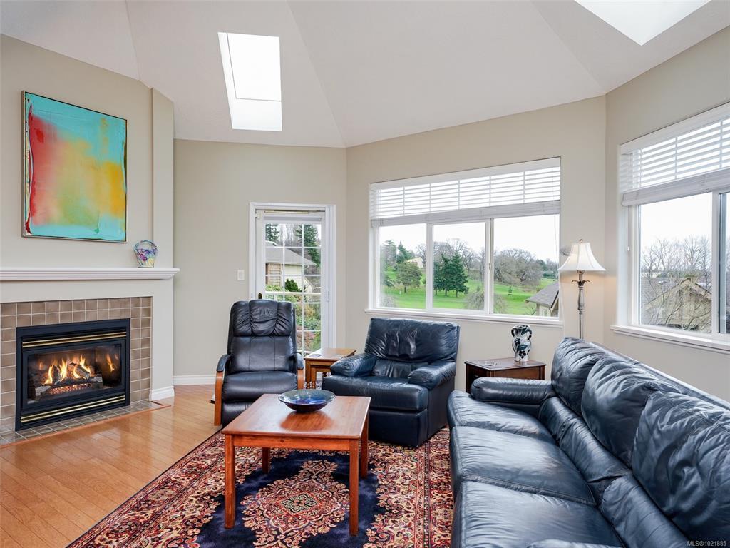 Embrace a lifestyle with comfort and calm at Cedar Hill Links. Surrounded by landscaped gardens and walking trails, this elegant end-unit townhome at 25-1286 Tolmie Ave borders the Cedar Hill Golf Course. Enjoy one-level living filled with natural light, skylit cathedral ceilings, and a private east facing deck with gas BBQ hookup overlooking the golf course. The modern kitchen features premium Viking Pro Series stainless steel appliances, a gas range, Bosch dishwasher and granite countertops, and opens to the inviting living area with a gas FP. The primary suite offers a tranquil retreat with a stylish ensuite. The lower level adds a spacious rec room with pool table, 4pc bath, media room, custom cedar-lined wine room, and ample storage for all your needs. With a double garage, energy efficient heat pump w/AC and pet-friendly policy, this well-managed, centrally located complex blends elegance, privacy, and recreation where every day feels like a resort escape beside the fairways.