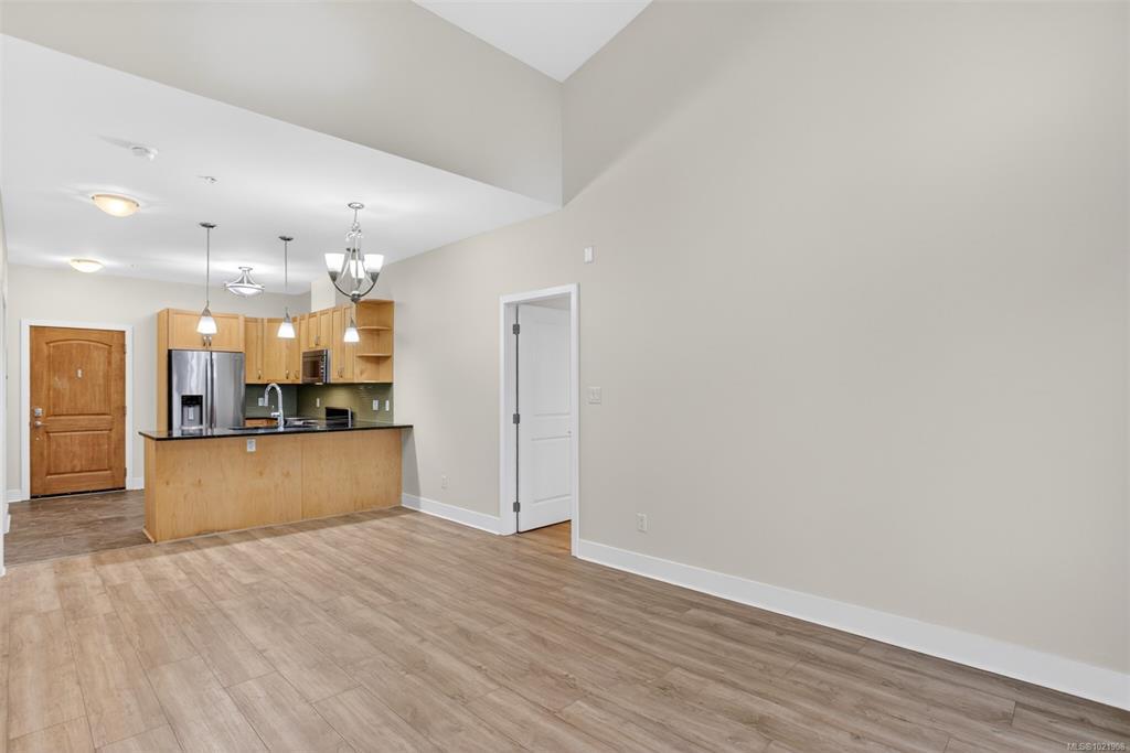 Top-floor 2-bed, 2-bath condo in the well-managed Casa Bella complex. This bright and airy unit features vaulted ceilings (up to 15 feet), large windows, and a private balcony overlooking landscaped gardens and walking trails. The modern kitchen offers stainless steel appliances, quartz countertops, and a breakfast bar. The primary bedroom includes a full ensuite with a deep soaker tub. The second bedroom is ideal as a guest room or office (no closet). In-suite laundry, underground parking, and a storage locker included. Enjoy access to a fitness centre and games room in a peaceful, park-like setting. Pet-friendly and located minutes from Millstream Village and Hwy 1 for easy commuting. Book your showing today.