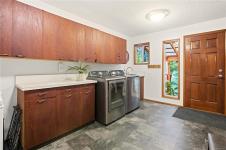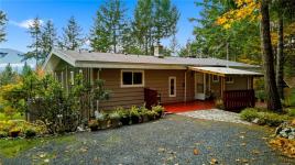 Discover rustic West Coast living at this charming lakeside retreat. Lush, vibrant gardens and fruit trees with an irrigation system—lead to your private dock with a shaded gazebo and lounge area, perfect for paddleboarding, boating, or enjoying peaceful mornings. The home offers a level entry, ideal for all ages and abilities, and features warm, inviting interiors with spacious living areas, a country-style kitchen, and a seamless flow to the outdoor deck. The bright, sun-filled interior opens to tranquil forest views and garden paths, perfect for summer entertaining. The walk-out lower level includes a fully self-contained suite with its own entrance and kitchen, ideal for guests or rental income. Additional highlights include a cedar sauna, a 3-phase digital water pump, and an 18’ x 22’ garage/workshop with new metal roof, attached 12’ x 20’ yellow cedar post-and-beam woodshed, and covered breezeway. A rare year-round lakeside opportunity.