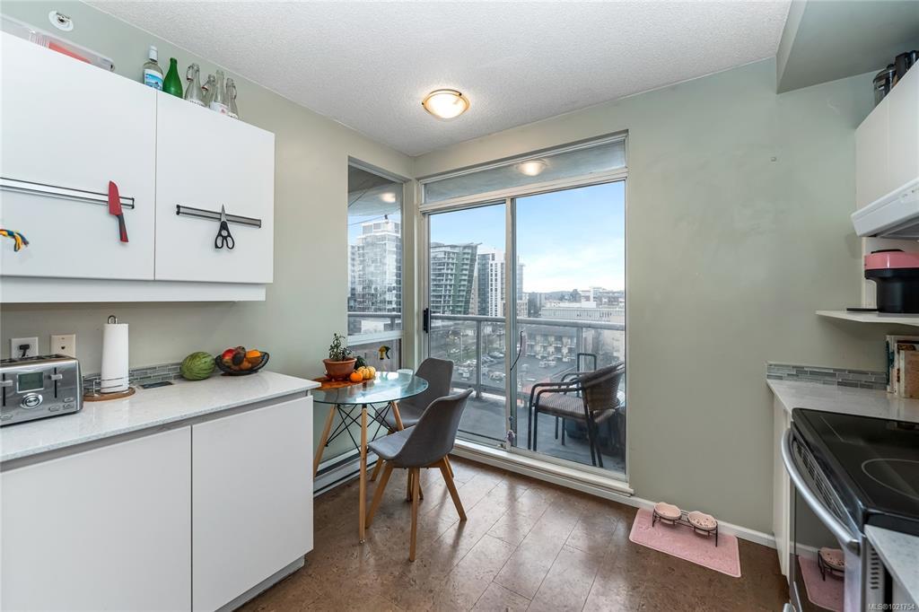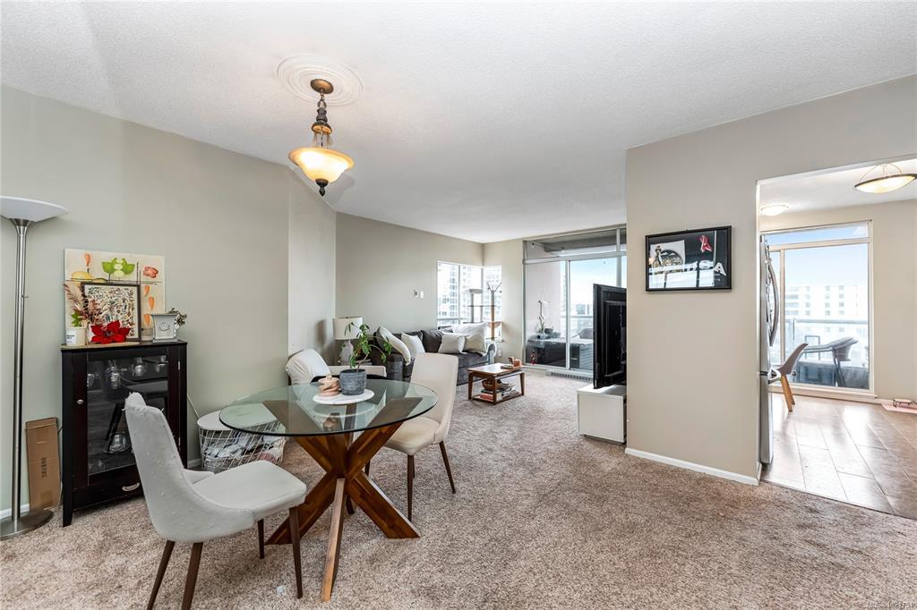 Experience exceptional value in this spacious and affordable 2-bedroom, 2-bathroom home in one of downtown Victoria’s most sought-after steel and concrete buildings. Ideally located in vibrant Harris Green along the Cook Street corridor, you’re steps to cafés, restaurants, gyms, groceries, transit, and the Inner Harbour. The layout features a large, comfortable living room with ample space for full-sized furniture, complemented by a functional kitchen with clean white cabinetry and generous storage. The thoughtful split-bedroom floor plan offers excellent separation - perfect for roommates, guests, or a dedicated home office. The Primary bedroom includes a walk-through closet and a private ensuite. A standout feature is the fully covered balcony, providing year-round outdoor enjoyment. Additional conveniences include in-suite laundry, secure underground parking, and the support of an on-site caretaker. A great opportunity to secure value and space in a highly walkable urban location.