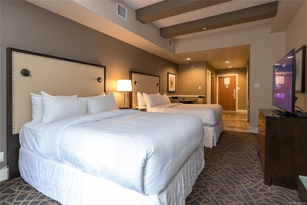 113/115 A - Beautiful ground floor Quarter share at Bear Mountain golf community. Fairway condos/hotel building. Offering includes a 1450 sq ft / 3 bath suite features full kitchen, fireplace. Includes lock off adjoining 1 bdrm/1 bath with kitchenette. Spacious 44ft x 23ft private partially covered patio. The Fairway is located off the 1st hole of one of two Jack Nicklaus designed golf courses. Just steps from the Westin Hotel, clubhouse, spa facilities and restaurants. Fantastic amenities avail. by membership OR day pass purchase: Clay tennis courts, mountain bike trails, Bear Mountain Activity Centre (multiple gyms & indoor pool & hot tub) Mt Finlayson trails for the outdoor adventurers. Only a 20 min drive to Victoria's downtown. The unit is rented as hotel rooms with revenue back to owner (managed by hotel staff). Around 5% ROI Annually if fully rented. Underground secure parking available. Plus GST. Opportunity for buying 2 Quarter shares. A/B both.