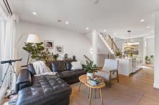 Experience breathtaking ocean and mountain views from this modern North Nanaimo townhouse, complete with a 700 sqft rooftop patio designed for entertaining or relaxing in style. Offering 1,667 sqft across three levels, this 3-bedroom, 3-bathroom home combines thoughtful design with modern finishes. The main level showcases an open-concept kitchen, dining, and living area with balcony access, large windows, and abundant natural light. The entry-level primary suite includes a private balcony, walk-in closet, and spa-inspired 5-pc ensuite with a soaker tub. The lower level features a spacious second bedroom with walk-in closet, a 5-pc bath, office and laundry room. Every floor offers balcony access to maximize the sweeping views. Located near Linley Valley trails, shopping, transit, and Nanaimo North Town Centre, this home blends luxury with everyday convenience in one of Nanaimo’s most desirable neighbourhoods.