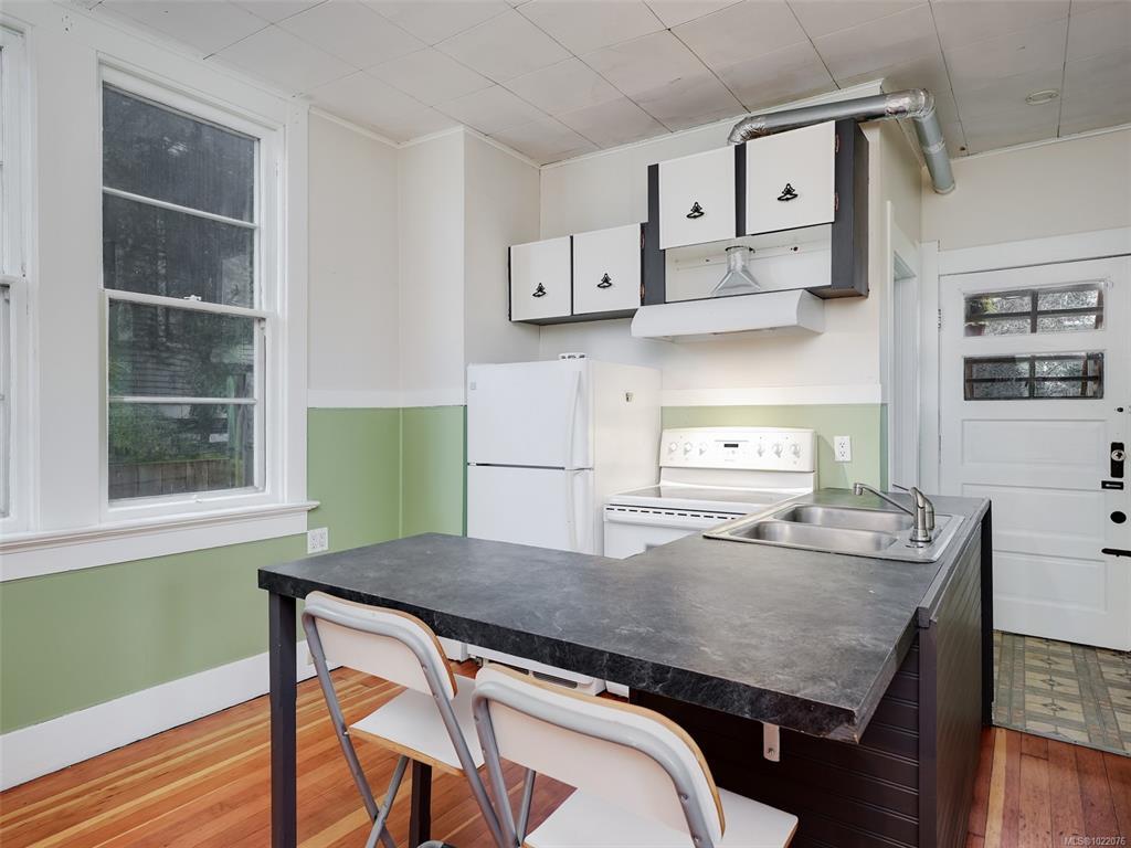 Investor and developer opportunity in Victoria’s Central Park area. This legal duplex sits on a 60 x 120 lot with a sunny, south-facing rear yard and a double garage, plus a layout that invites creative thinking. The duplex is heritage registered but not designated, opening the door to future options while keeping the character that buyers love. With the building positioned to one side, explore potential to stratify the existing home and consider a second duplex, or evaluate a missing middle style project. The main floor offers a vacant one bedroom suite with its own bath, ready for your tenant selection, and it has been rented as a two bedroom plan in the past. The upper suite features a two or three bedroom layout with one bath and is home to a long-term tenant planning to move in late fall 2026. 1920s charm meets key mechanical upgrades, with added value possible through basement development, garage accommodation potential, or full redevelopment.