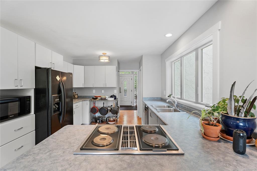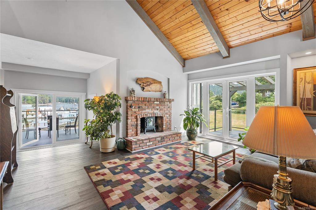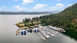 Experience true West Coast living in this stunning 2,693 sq.ft. oceanfront home on a 0.35-acre lot in beautiful Genoa Bay. Enjoy breathtaking panoramic views from nearly every room and all three decks. With 1/3 ownership of a private dock with legal foreshore tenure, this property offers moorage for up to a 35’ boat—perfect for boating enthusiasts. The main floor features vaulted ceilings, a cozy fireplace, dining area, and a kitchen with breakfast nook and deck access. Also on this level: a spacious bedroom, 2-piece bath, and laundry. Upstairs, the primary suite boasts a 5-piece ensuite and private deck access, while a second bedroom offers its own 3-piece ensuite and shared deck access. The lower level is ideal for a family room, office, or studio, and includes two finished storage rooms and backyard access. Recent updates include a metal roof, windows, doors, gutters, and paint. Just a 2-minute walk to Genoa Bay Marina, public beach, and the popular Genoa Bay Café.
