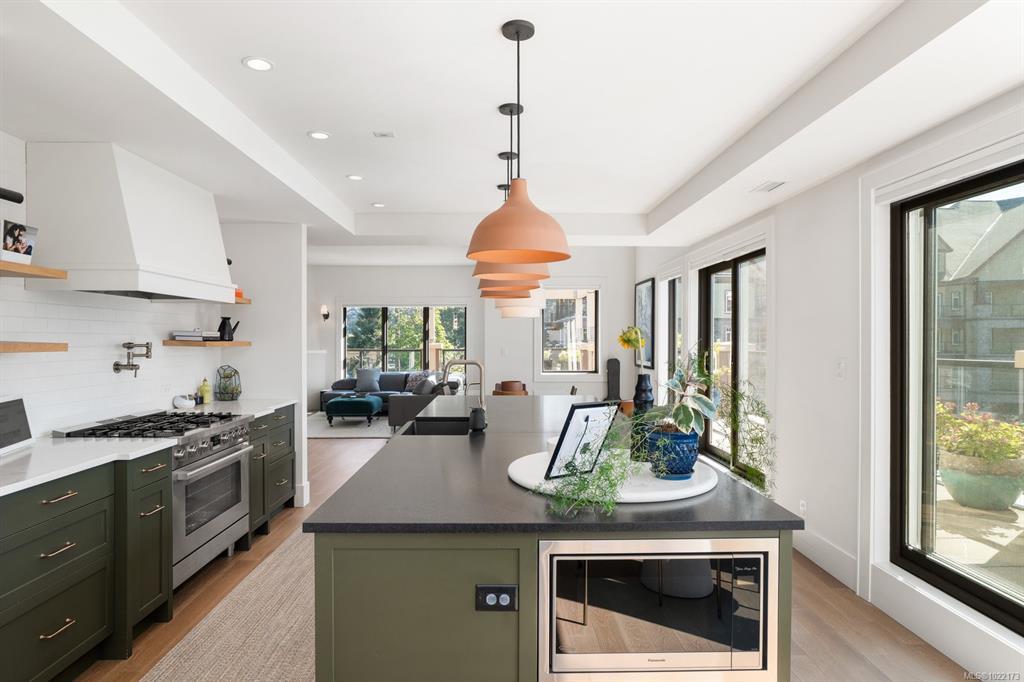 BEAR MOUNTAIN PENTHOUSE!! Luxury living at its absolute finest, this extraordinary Bear Mountain penthouse offers 2,100 sq. ft. of beautifully finished interior space, paired with a 700+ sq. ft. wraparound deck designed to showcase panoramic views of the golf course and surrounding natural beauty. Thoughtfully renovated from top to bottom, this rare residence features 3 spacious bdrms, including 2 primary suites, & 3 spa-inspired bathrooms for comfort & privacy. Elegant hardwood & tile flooring, soaring floor-to-ceiling windows, & a refined, resort-like ambiance create an atmosphere of sophistication. Nestled in the heart of Bear Mountain, you’ll enjoy a true lifestyle community — steps from world-class golfing, tennis, hiking, & spa facilities, along with popular coffee shops & restaurants. Just minutes to Millstream Village for shopping and everyday conveniences, & only 20 minutes to Downtown Victoria, this penthouse perfectly combines luxury, convenience, & location.