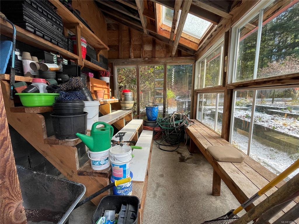 GARDENERS DREAM with herb farm. Want a ton of space for your family or for a home based business? This home and property has everything you could want. For the family, currently set up as a 5 bed plus den, 2 bath home with so much room for expansion or changes. For a business, this was previously set up beautifully for a gallery with tons of storage, display area and multiple work areas. The gallery had a separate entrance from the residence but connected for ease of "going to work". Tiled heated floor in the gallery, 29 skylights make the work areas so naturally bright and comfortable to create masterpieces in. It's currently a beautiful spot for displays of beautiful art. The potential for B&B or hobby farm is great as there are areas that could be closed off from the main house to where a B&B could be set up perfectly. The 2.15 acreage is covered with 65 rhodos and other perennials, fruit trees, berries, greenhouse and raised beds with herbs and veggies. Room for all the toys here.