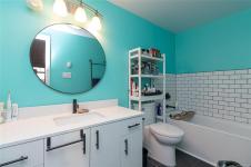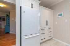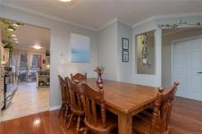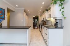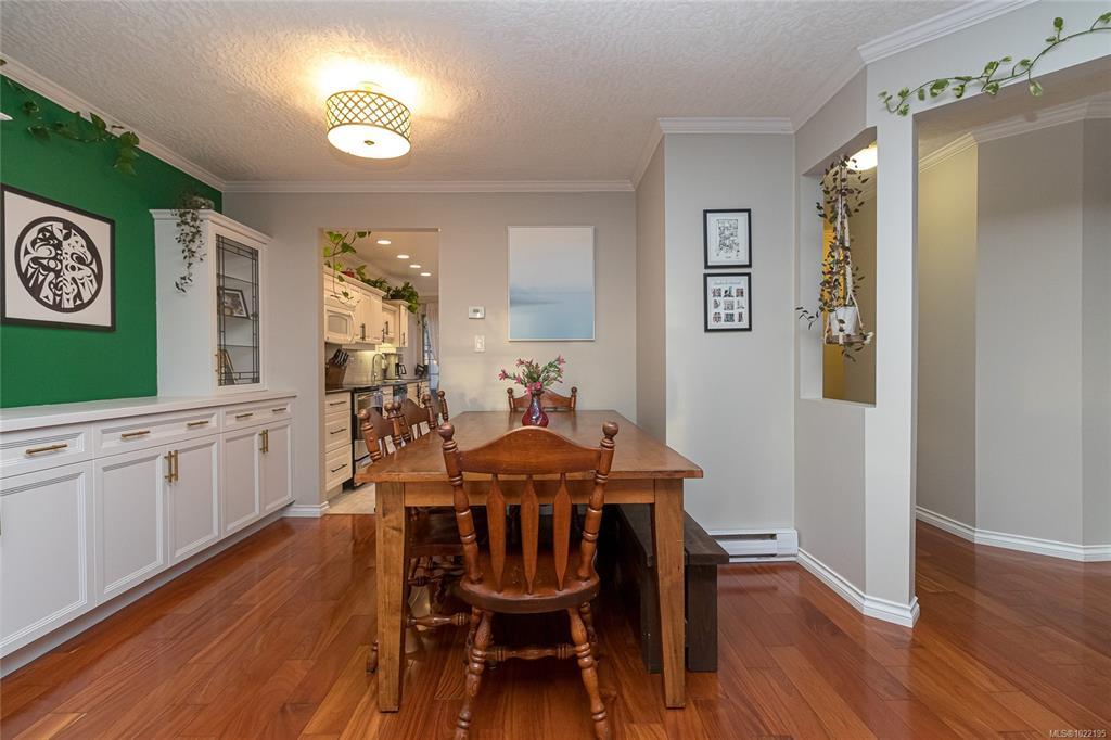 Welcome to Admirals Gate: a sought-after, well-maintained complex in Esquimalt. This updated 2-bed, 2-bath townhome offers stunning ocean and Olympic Mountain views with an exceptional sense of light and space. The large kitchen features ample storage, under-cabinet lighting, a moveable island, and a breakfast nook with balcony access — perfect for morning coffee. Warm cherrywood-style floors, crown moulding, and built-in blinds add elegance throughout. The living room offers custom built-ins, an electric fireplace, and a west-facing balcony ideal for evening sunsets over Esquimalt Harbour. The primary suite includes deck access, a walk-in closet, and a renovated ensuite, while the second bedroom is bright and spacious with its own deck. Includes garage, driveway, pet-friendly bylaws, proactive strata, and direct access to the E&N Trail.