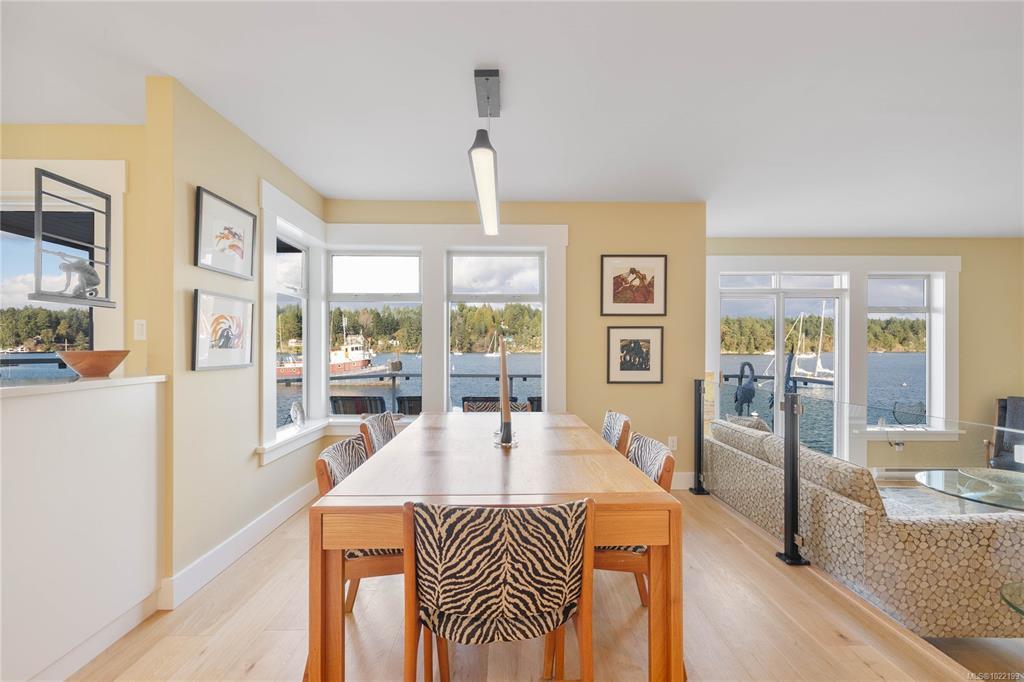 EXCEPTIONAL oceanfront townhome in Grace Point. A rare offering in this highly sought after location in the heart of Salt Spring Island. Elegant, gracious, beautifully renovated and among the most desirable units in the complex. Attention to detail in design bar none, this 2 bd, 3 bath home has two private oceanfront decks one on each level. Combining the best of both traditional and contemporary layouts with a modern kitchen featuring high end appliances including Fisher Paykel dual dishwasher, Bosch oven with induction cooktop and more. The open dining and living areas are perfect for entertaining friends and family. Refinished oak floors have custom flush floor vents. Thoughtful new lighting throughout with darkout blinds in all of upper level. Spacious primary with ensuite and built in cabinets. Enjoy the best views of harbour life in a private setting within walking distance to all town amenities including float plane and a protected marina for your boat. See supplements for more.