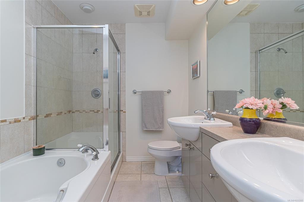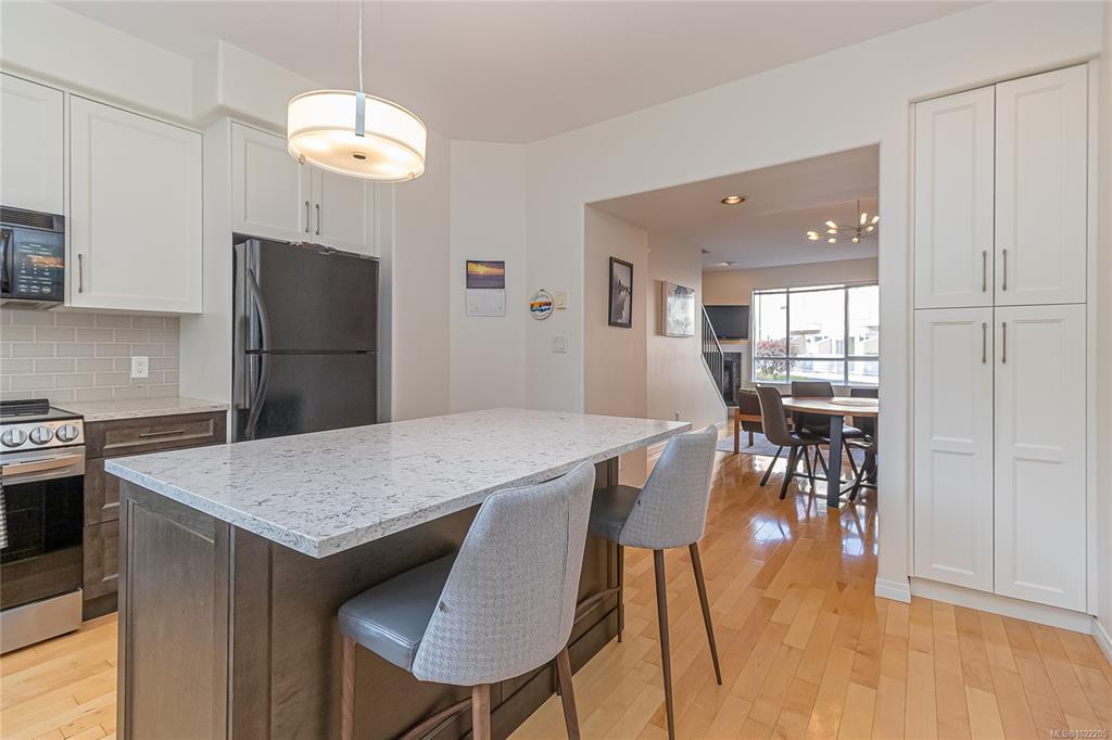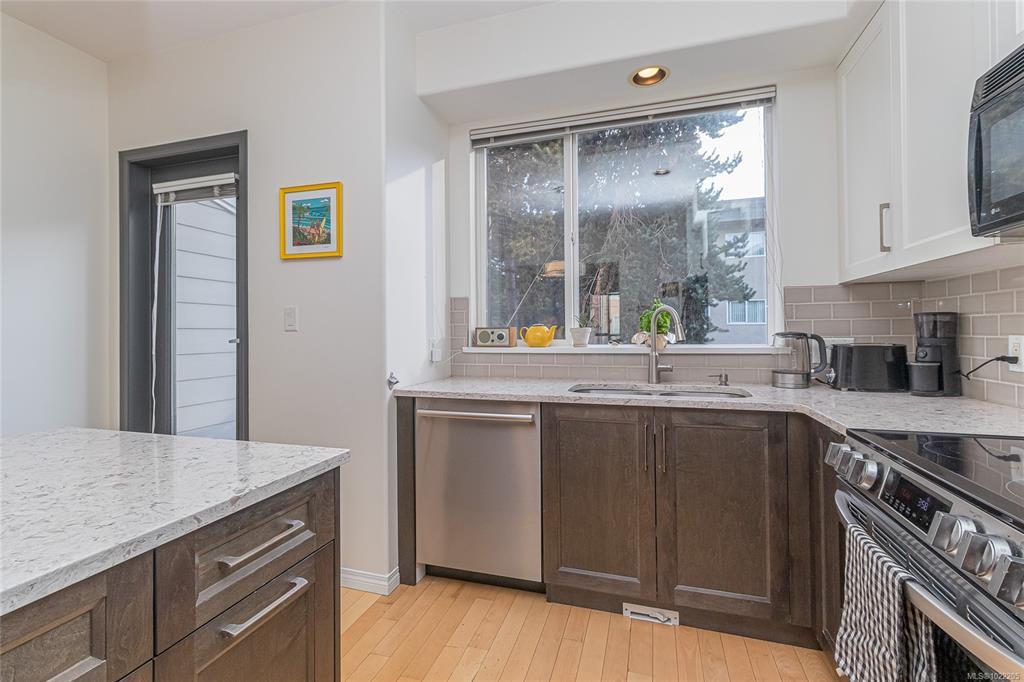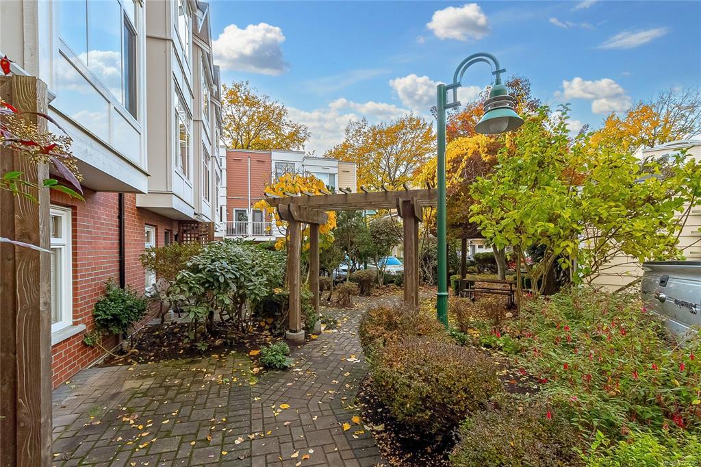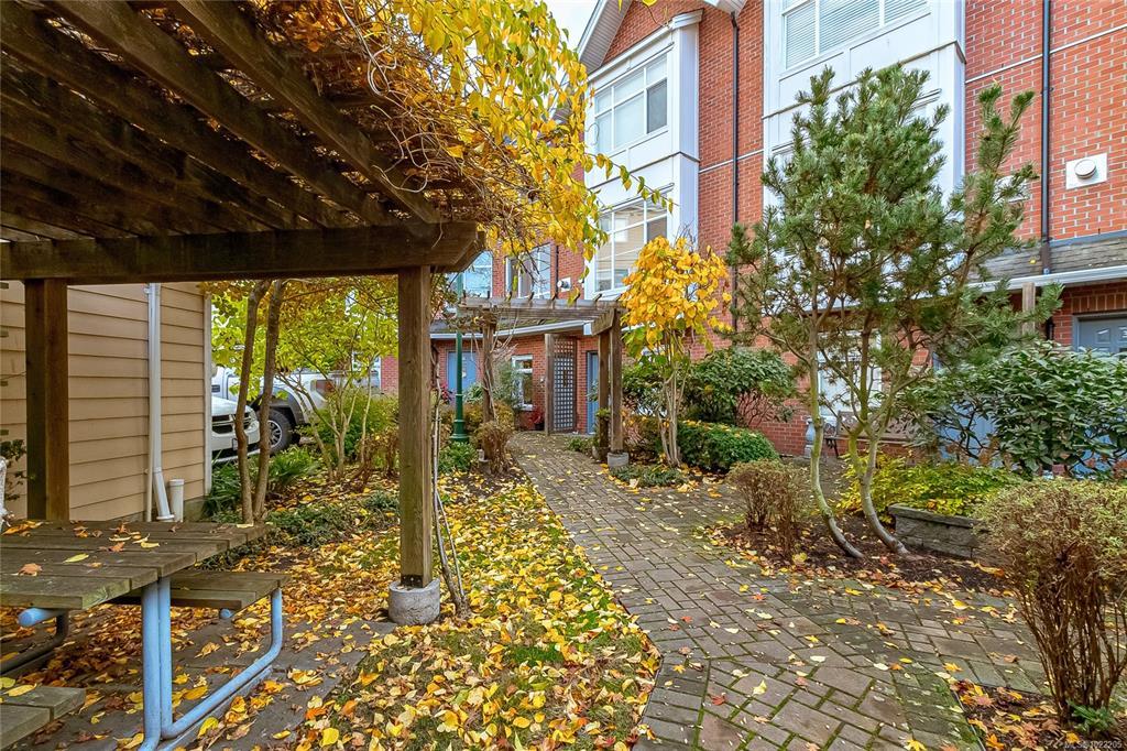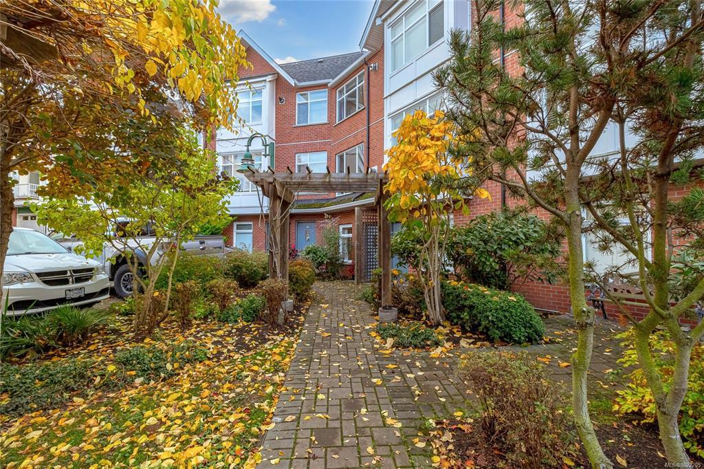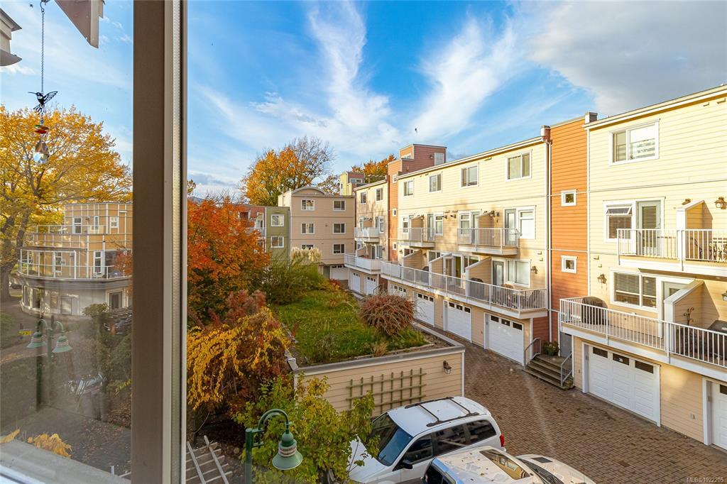 Bright and spacious 3-bedroom, 3-bath townhome perfectly situated along Dallas Road in the quiet heart of James Bay—just steps from the ocean, beaches, parks, Fisherman’s Wharf, the Breakwater, the Inner Harbour, and Downtown Victoria. The entry level offers an oversized single-car garage and a flexible office or guest room with a built-in Murphy bed, opening to a beautiful courtyard with gardens, pergolas, and picnic areas. The main level features 9-ft ceilings and a stunning renovated kitchen with engineered maple floors, quartz countertops, timeless cabinetry, stainless steel appliances, wine storage, and a large island. A sunny south-facing deck overlooks the courtyard and living rooftop gardens. The bright living/dining area includes large windows and a cozy gas fireplace. Upstairs offers laundry, two bedrooms, and two baths, including a spacious primary suite with double sinks, soaker tub, separate shower, and skylights. A true James Bay gem!