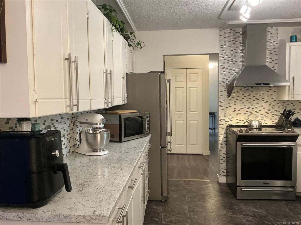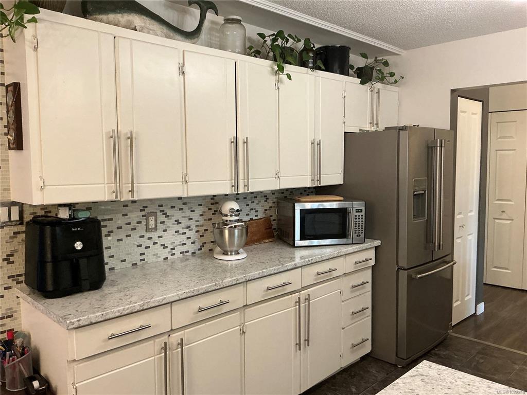 Nicely updated 3 bedroom 2 bathroom Rancher in Willow Point. Main level living, large living room with a newer cozy gas Fireplace. Great ambiance and economical heat source. Beautifully updated kitchen with newer floors,tile backsplash,counter tops and newer appliances. Also new Vinyl windows throughout. 3 good size bedrooms the primary with a convenient 2 piece ensuite. Dining area big enough for the whole family. Just off the kitchen there is a large family room and access to a private fully fenced backyard including a large deck great for bbqs annd entertaining. Also a private hot tub to enjoy year round. There is side parking with blue chip ready for RV parking. A full double garage. Great location close to schools on a bus route and steps away from popular Campbell River Sportsplex.