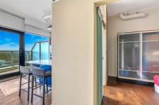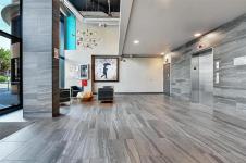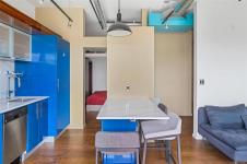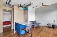 This modern 1-bedroom penthouse, built in 2019, features 10-foot ceilings, floor-to-ceiling windows, and a bright open-concept layout filled with natural light. The contemporary kitchen offers quartz countertops, a central island, and built-in stainless steel appliances, seamlessly connecting to the living and dining areas. Enjoy outdoor living on the spacious 104 sq ft curved balcony, ideal for entertaining or relaxing.