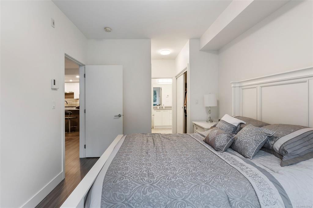 GORGEOUS mint-condition 2 BEDROOM + DEN condo overlooking the Galloping Goose Trail with 2 UNDERGROUND PARKING spots! Bright, sunny, and spacious with a smart, functional layout ideal for everyday living and entertaining. Open-concept floor plan with excellent natural light and seamless flow to a PRIVATE BALCONY, perfect for morning coffee or unwinding at the end of the day. Chef's kitchen features a large island, GAS STOVE, ample built-in cabinetry, and tons of prep space. Large primary bedroom with WALK-IN CLOSET plus IN-SUITE LAUNDRY! PET FRIENDLY building with a PRIVATE LOCKER, bike spaces, repair facilities + pet wash station. Outdoor BBQ patio and fire pit area plus a beautiful in-house party space. Unbeatable location next to Victor Chen park and right on the walking, biking, and running paths of the Galloping Goose Trail. Easy access to Costco and literally just steps to Belmont Market w/ Starbucks, grocery shopping, restaurants and transit. Book your private viewing today!
