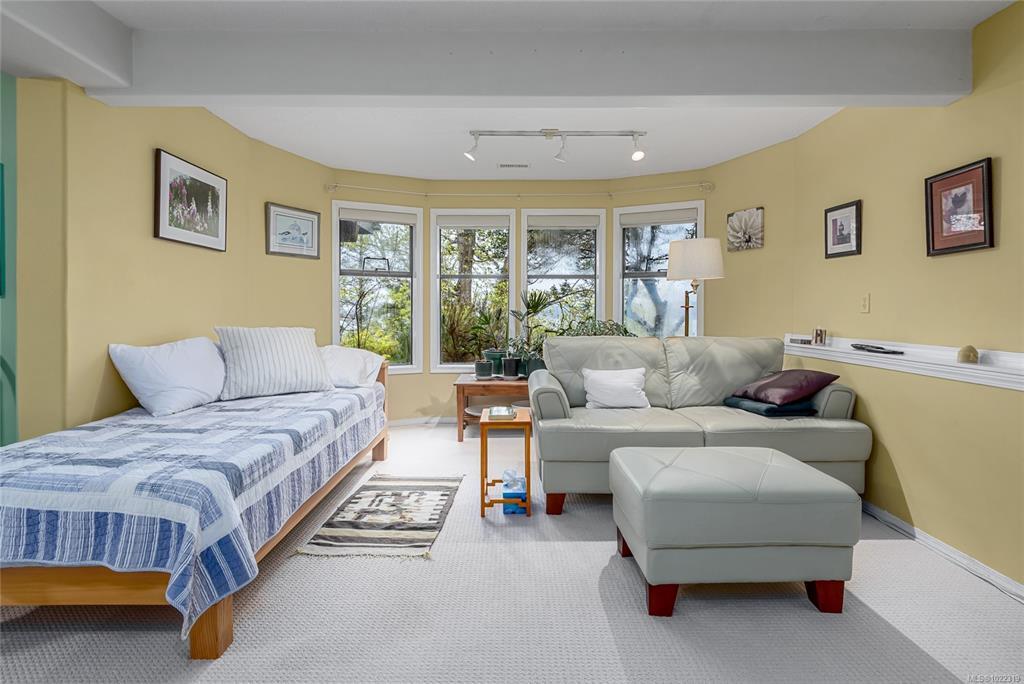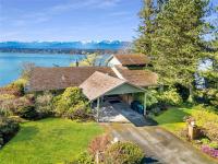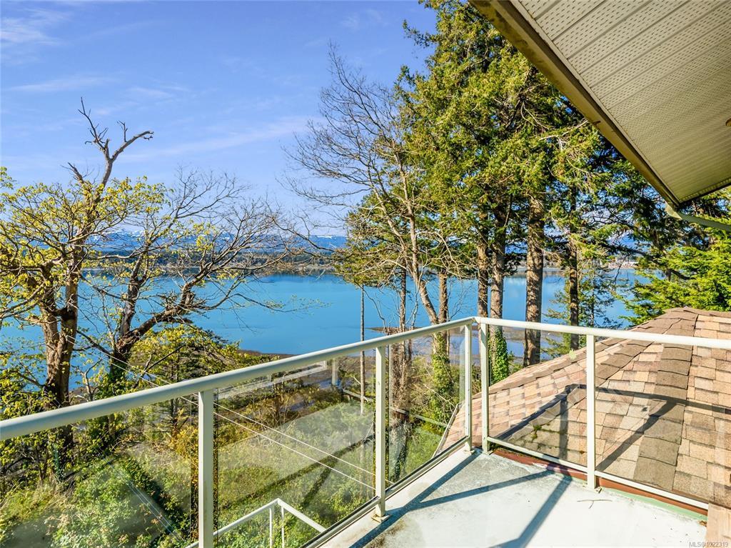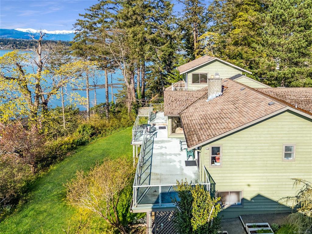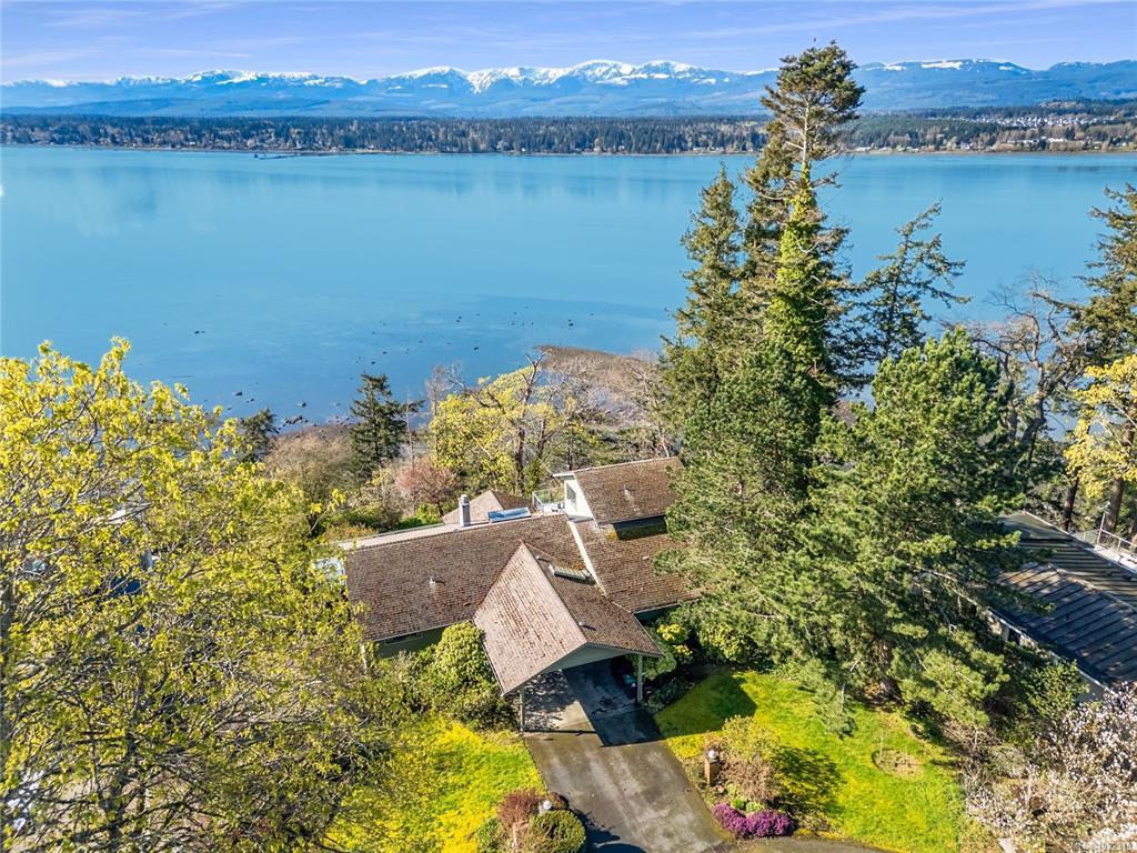 Rare high-bank waterfront property inside Town of Comox. 1-owner original-build executive home, 0.43 acres walk on waterfront. End of quiet cul-de-sac, no thru traffic, bordered by 2 executive waterfront homes. Elevated above Comox Bay with views marina, Beaufort Mtns & Comox Glacier. High-bank provides privacy. Walk-on waterfront access via existing trail. Trail is overgrown from years of non-use due to owners’ age but remains & could be reopened, allowing private bay access. Uncommon for an in-town high-bank lot. 4,777 sq ft, 3 levels. Size & footprint rarely found on Comox waterfront. 5 bedrooms: 3 bedrooms on main floor, primary bedroom with ensuite, private balcony upper level, plus 1-bedroom non-conforming suite lower. Natural gas hot water on demand, forced-air furnace, heat pump, natural gas fireplace with original Union Bay brick. Interior largely original. Best viewed as restoration & modernization opportunity. Value is land, waterfront, elevation, views, size, & location.